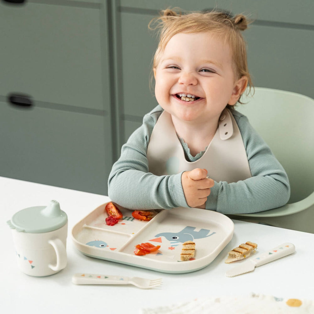 Fejr de små øjeblikke ved spisetid med DonebyDeer Celebration Sand Foodie Bestiksæt. Sættet er designet med børns sikkerhed for øje, hvilket ses i de afrundede kanter, der sikrer behagelige og sikre første måltider. Det ergonomiske design sikrer, at selv de mindste hænder får et godt og fast greb, hvilket fremmer selvstændighed ved måltiderne. Dette børnebestik er både mikroovn- og opvaskemaskinesikkert, hvilket gør rengøringen let og bevarer mere tid til familiehygge.