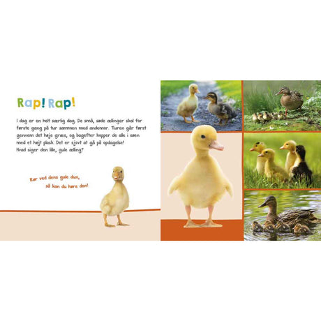 I starten handler det om at mærke og se. Gradvis lærer børnene om dyr, hverdagen og årets gang, mens deres ordforråd vokser naturligt gennem leg med bøgerne.