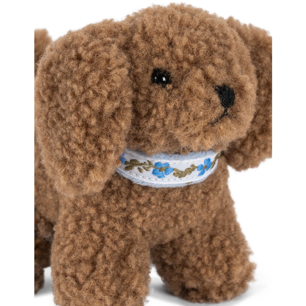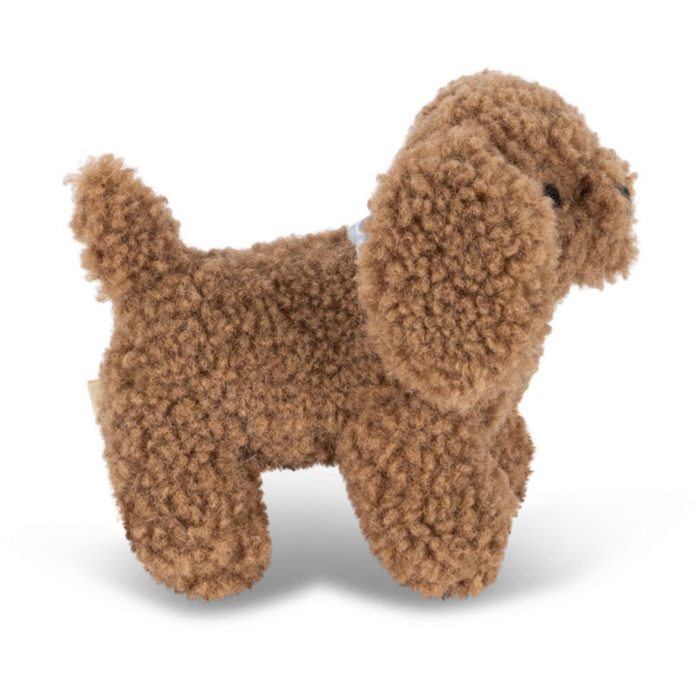 Aktivitetslegetøjet "Konges Sløjd Dog Activity Puppy" er perfekt til spædbørn fra 0 måneder. Dette charmerende legetøj er fremstillet med en indbygget klokke, der udgiver en mild raslende lyd, stimulerende barnets hørelse og opmærksomhed. Legetøjet er designet til at være sikkert og nemt at gribe for små hænder, hvilket fremmer motoriske færdigheder. CE-certificering sikrer, at alle materialer er sikre og velegnede til børn. Den bløde struktur gør den let at transportere og opbevare, og den er yderst vedligeholdelsesvenlig. En perfekt måde at berige familiens samværd på gennem sikker og udviklende leg.