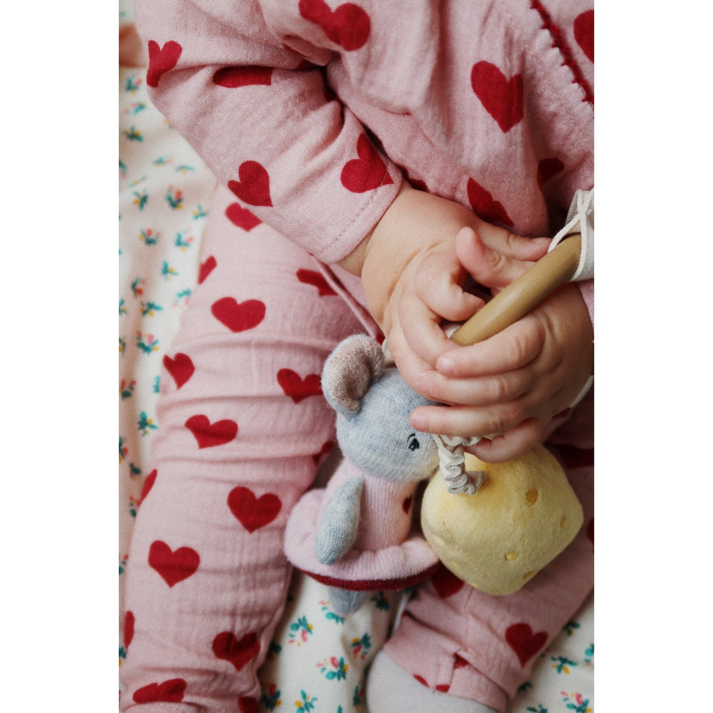 Konges Sløjd Mouse Aktivitetslegetøj er perfekt til at vække nysgerrighed og fremme tidlig udvikling hos spædbørn. Dette charmerende legetøj er sammensat af en aktivitetsring med bløde mus-figurer i en blanding af økologisk bomuld og uld, hvilket gør den både sikker og behagelig for dit barn at udforske. Med sin lette silikonering er den nem at gribe for små hænder, sikker at tygge på og enkel at rengøre. Fra 0 måneder, denne aktivitetsring understøtter både motorik og sensorisk vækst og tilføjer en hyggelig tone til familiens legetid.