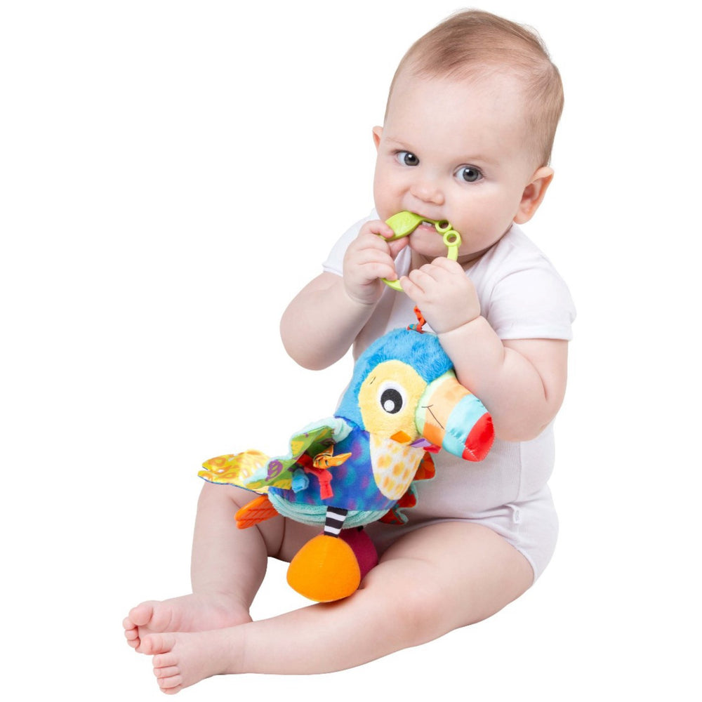 PlayGro Tamika Tucan med Ophæng er det perfekte aktivitetslegetøj for babyer. Med sine livlige farver og varierede teksturer stimulerer det syn og følesans. Dette ophæng kan nemt fastgøres til barnevogne, autostole eller klapvogne, hvilket gør det ideelt til underholdning på farten. Inkluderet raslelyd vækker nysgerrighed og motiverer til leg, som understøtter motorisk udvikling. Dette legetøj er ikke blot en munter ledsager på rejser, men også en glimrende måde at styrke båndet mellem forælder og barn under leg.