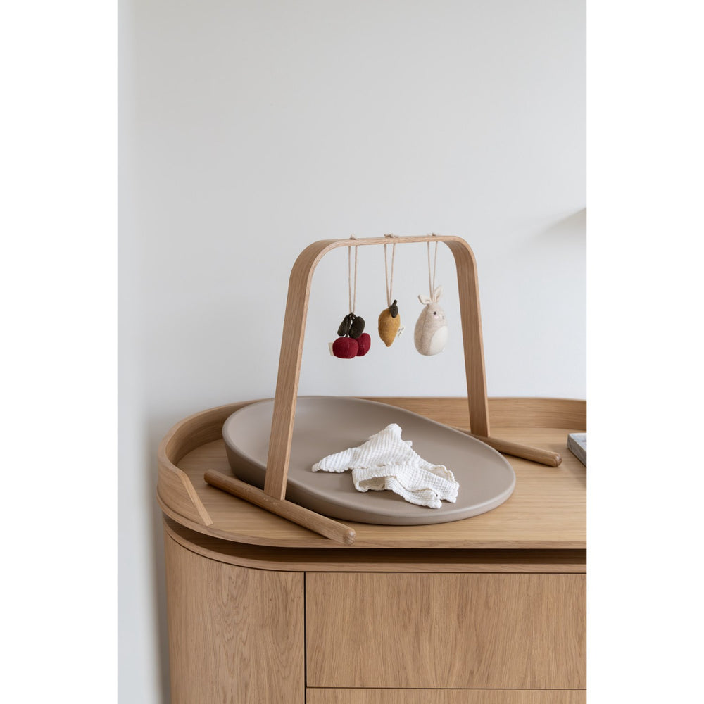 Oplev glæden ved alsidighed med KAS Kopenhagen Natural Oil Kas Activity Rack Neutral Oil, perfekt tilpasset til det voksende barn. Dette aktivitetsstativ, fremstillet af naturligt træ, sikrer jeres barns sikkerhed med afrundede kanter og en giftfri finish. Den rene, skruefri konstruktion giver et tidløst og sikkert miljø for barnet. Ved at tilføje familiens favoritlegetøj, skaber I en personlig og udviklende legeplads, der kan ændres efter behov. Legeopbevaringen bliver enkel, og den kompakte design tillader nemt flytning fra rum til rum. Dette aktivitetsstativ integrerer sig naturligt i jeres familieliv, idet det understøtter kreativiteten og udviklingen i hjemlige rammer.