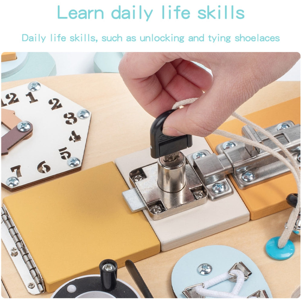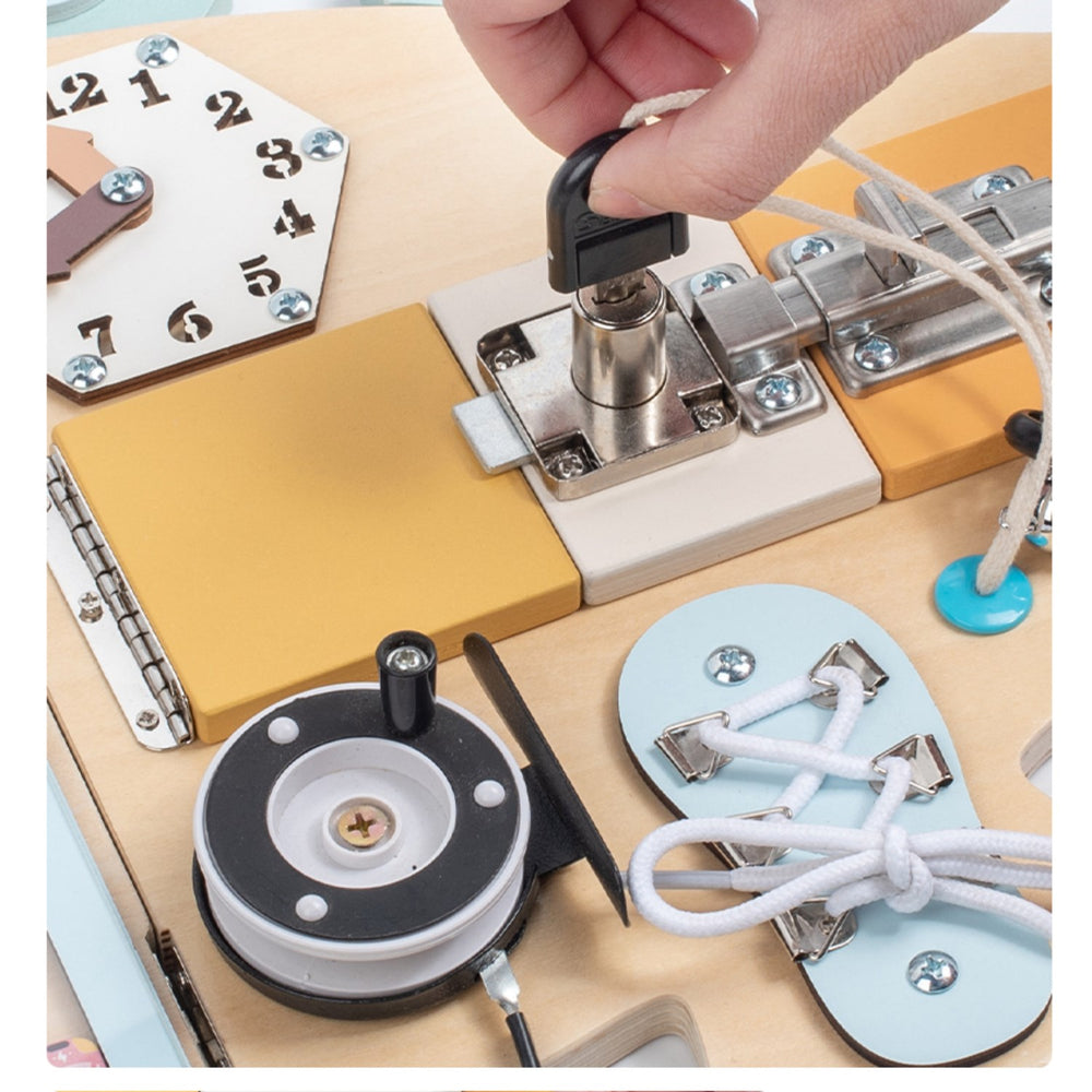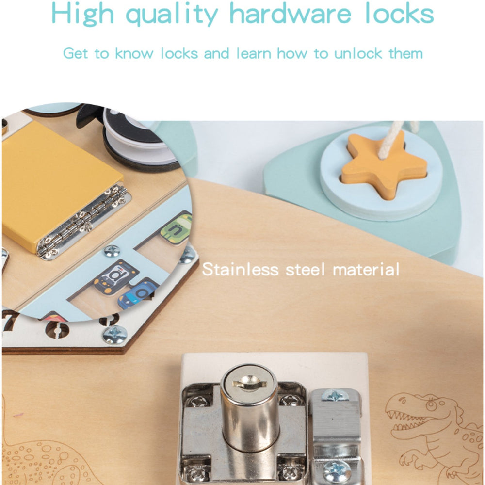 HEMMINGSEN Kids Natur Dino Aktivitetstavle er ideel til små opdagelsesrejsende. Denne farverige og håndgribelige tavle tilbyder børn fra 3 år og op mulighed for at udforske og lære gennem leg. Med elementer som drejelige tandhjul og praktiske låse hjælper den med at udvikle finmotorikken og logisk tænkning. Let at rengøre og opbevare, hvilket gør den til en favorit blandt forældre. Dens robuste design sikrer sikker sjov i mange år, og den bringer kvalitetstid til hele familien.