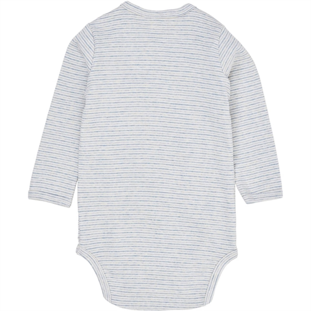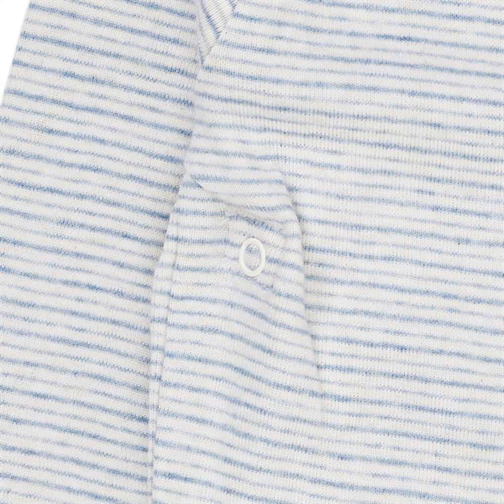 Denne langærmede, stribede slå-om-body fra Copenhagen Colors kombinerer stil og komfort. Fremstillet i ultrafin 100% økologisk bomuld, er denne body både skånsom og blød mod babyens hud. Det tidløse design i lyseblå striber sikrer, at bodyen både ser godt ud og bevarer sin form efter gentagen brug. Perfekt til hverdagsbrug og tilgængelig i flere størrelser.