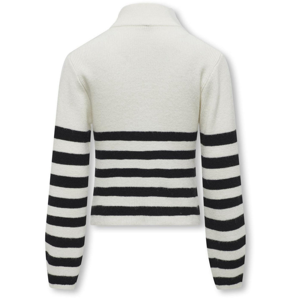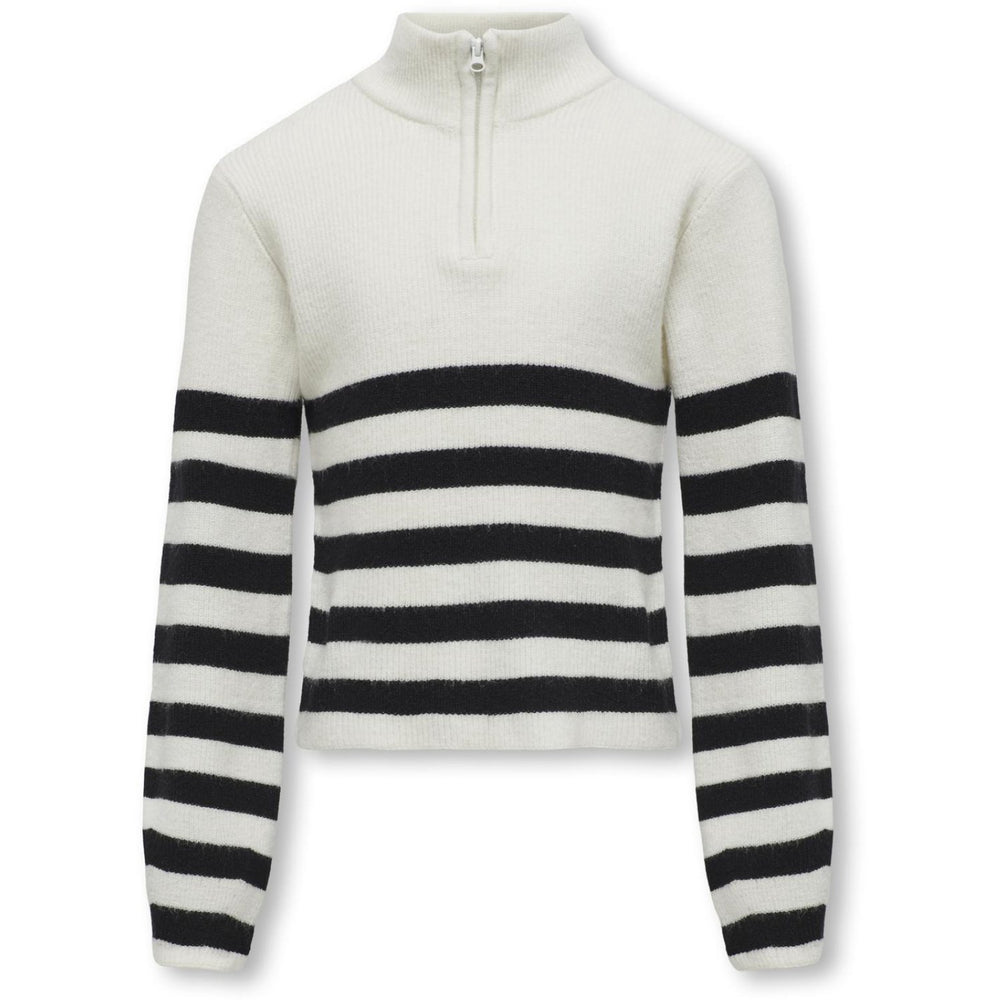 kids ONLY Cloud Dancer Black Franca Half Zip Stripe Strik Bluse Noos