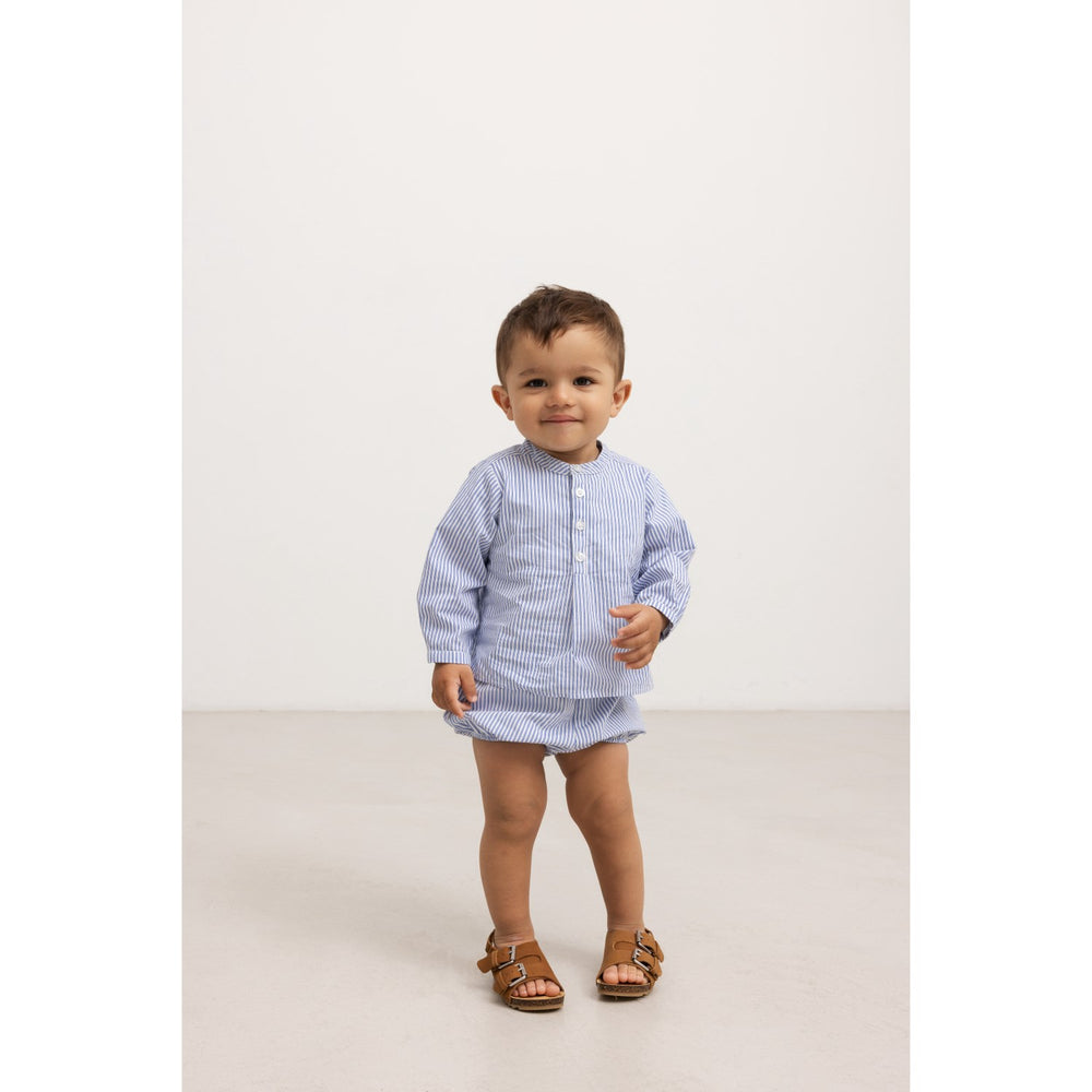 Disse charmerende MarMar Poplin Bolich Blue Strips Pava bloomers er fremstillet i let og crispy bomuldsstof, der tillader huden at ånde og sikrer komfort hele dagen. Med et delikat print og designet med god plads til bleen gør de sig perfekt til de smås aktive hverdag. Oeko-Tex® certificeringen garanterer fravær af skadelige kemikalier.