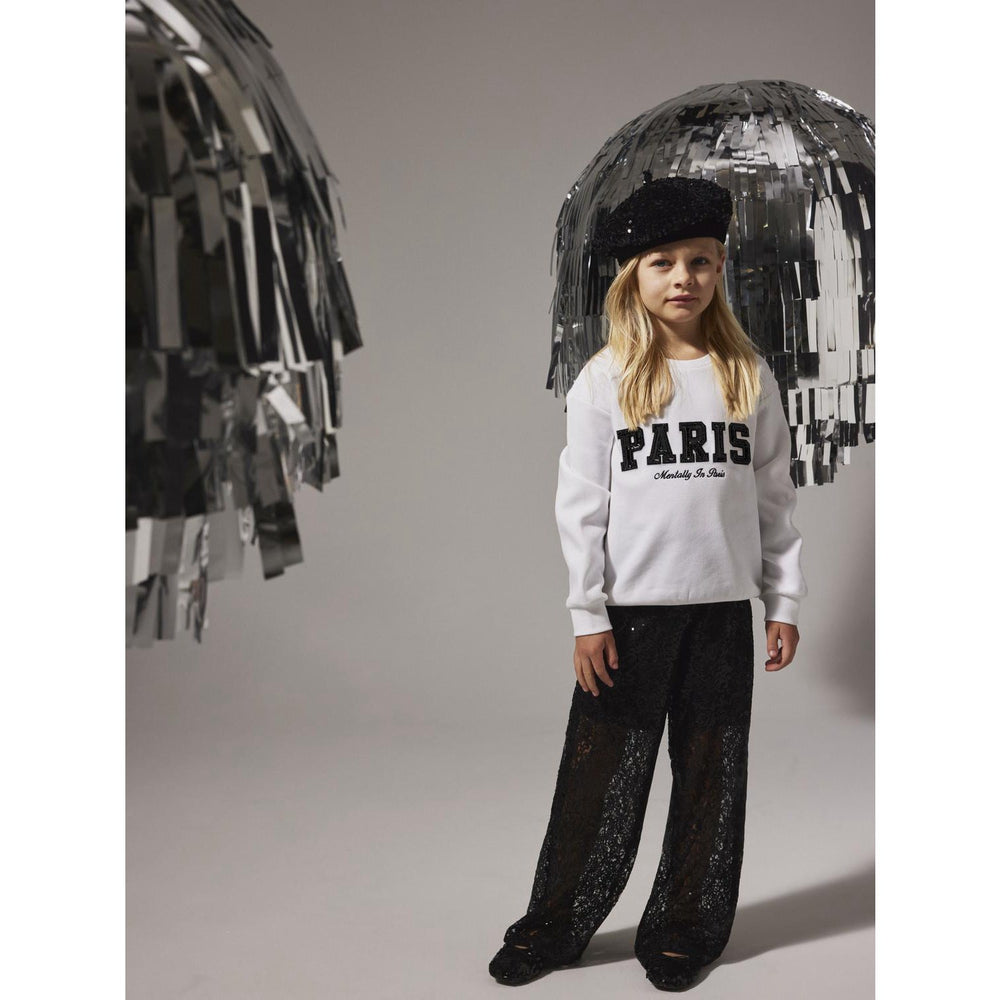 Giv dit barn komfort og stil med denne skønne sweatshirt, som er ideel til både skole og fritid. Fremstillet i blødt, børstet sweatstof, der sikrer en dejlig blødhed indvendigt og behagelig varme. Det trendy design inkluderer en klassisk rund hals, lange ærmer og fine detaljer såsom broderi og pailletter. Den almindelige pasform sikrer let bevægelighed, mens ribkanterne giver en skøn pasform. Denne sweatshirt er ikke bare behagelig at have på; den ser også godt ud i enhver børnegarderobe!