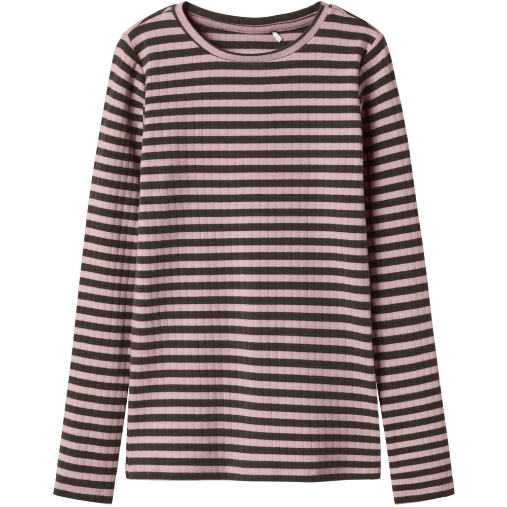 Gør hverdagen lidt sjovere med denne charmerende 'Name It Burnished Lilac Delisioso Suraja Bluse Noos'. Blusen er fremstillet i blød ribstrikket kvalitet, som sikrer en komfortabel pasform med høj elasticitet. Det lodrette stribede mønster bidrager til et stilrent, tidløst design. Med sit slim fit, lange ærmer og klassiske runde halsudskæring er denne bluse ideel til både skoledage og fødselsdagsfester. En praktisk og samtidig stilfuld tilføjelse til enhver børnegarderobe.
