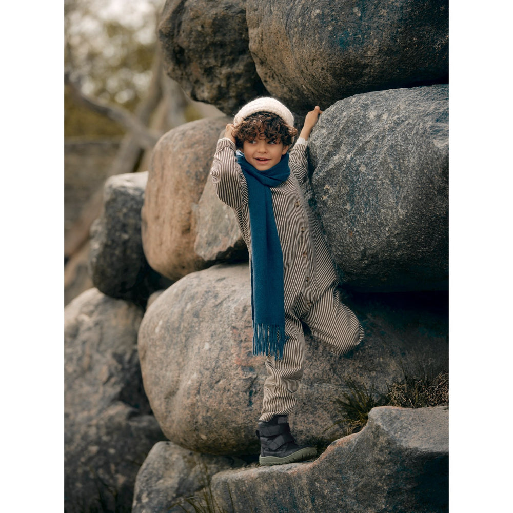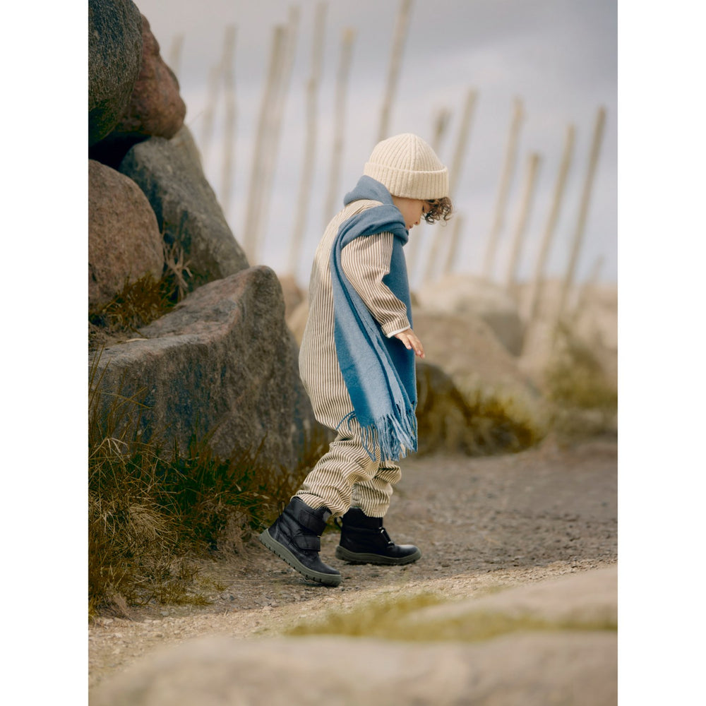Opdag et par robuste og stilfulde vinterstøvler fra Angulus, perfekte til de kolde måneder. Disse TEX-støvler er fremstillet af høj kvalitet med et ydre af genanvendt nylon og slidstærke læderdetaljer, der sikrer varme og tørre fødder til dit barn. Designet i sort og mørkegrå, er støvlen ikke kun praktisk, men også moderne med sin attraktive farvekombination og mønstre. Støvlen er udstyret med en blød og komfortabel vatteret indersål samt et indre af 100% merino uld, der garanterer optimal komfort og åndbarhed. Den justerbare velcroremme og den rummelige pasform sikrer en personlig og behagelig tilpasning, mens den fleksible og lette ANGULUS gummisål giver fremragende greb og frihed til at bevæge sig. Den faste hælkappe med ruskindskrave tilføjer yderligere stabilitet og støtte, hvilket gør disse støvler ideelle til leg og udforskning i alle slags vejr. Disse støvler er lette at pleje for med deres PFAS-fri TEX-membran og holdbare materialer. Et praktisk logohælstrop gør det nemt for dit barn selv at tage støvlerne af og på. Designet i Danmark og håndlavet med omsorg i Portugal, disse Angulus støvler kombinerer funktionalitet med skandinavisk designæstetik. En ideel følgesvend til de kolde måneder, sikrer de komfort og stil til dit barns hverdag.