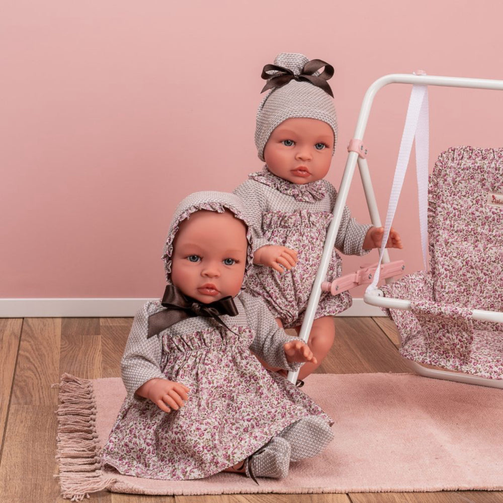 Oplev charmen ved Así Leonora Dukke, der bringer klassisk legetøjsglæde ind i hjemmet. Denne yndige dukke, designet og produceret i Spanien, måler 46 cm, perfekt for små børn at omfavne og lege med. Med sit livagtige udseende, fra de detaljerede øjne og vipper til den bløde mave kombineret med fastere arme, ben, og hoved, støtter den både fantasifuld leg og udviklingen af finmotorik. Leonora er klædt i en delikat todelt kjole med matchende kyse, og kommer komplet med bløde futter, hvilket gør hende til en ideel følgesvend for børn over 3 år, sikret med CE-mærkning. Hendes størrelse og robusthed sikrer let vedligeholdelse og langvarig værdi, hvilket gør legetid både sjov og tryg. Así Leonora Dukke skaber varige minder og styrker båndet i familien gennem kærlig og kreativ leg.