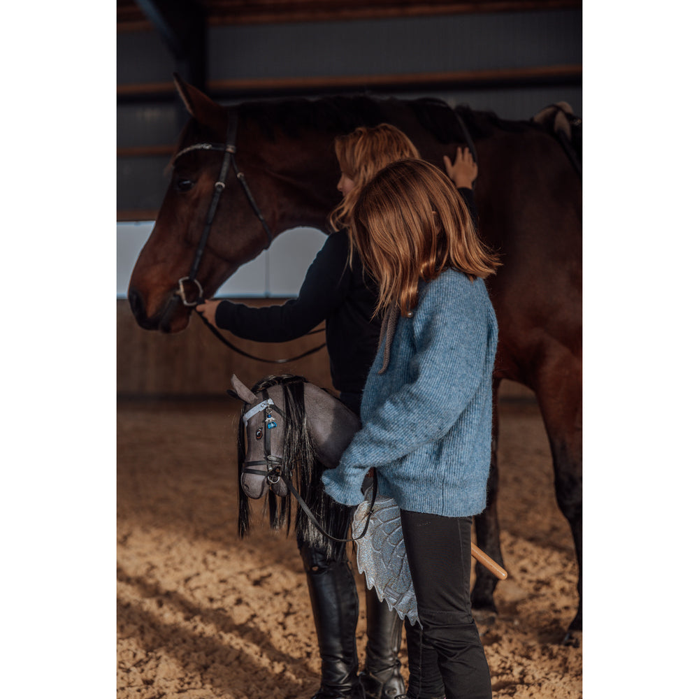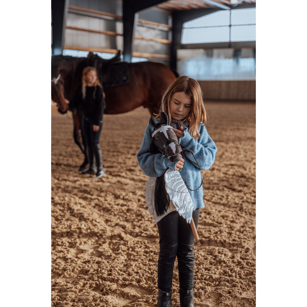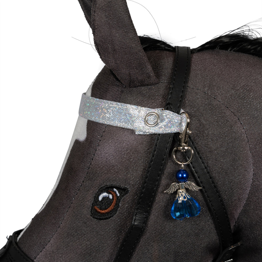 • Sættet inkluderer et glittrende sadelunderlag, et matchende pandebånd og en fin charm, som kan fastgøres hvor som helst på enten kæphest eller rytter