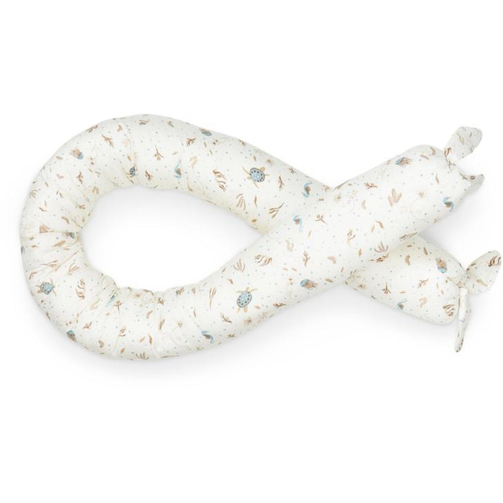 Giv dit barns soveområde en sikker og komfortabel følelse med Cam Cam Copenhagen Sea Garden Sengeslange. Denne multifunktionelle sengeslange, dekoreret i det beroligende Sea Garden-motiv, er designet til at skabe en blød barriere langs sengens kanter, hvilket reducerer risikoen for små bump om natten. Den bløde økologiske bomuld sikrer en allergivenlig og blid overflade mod barnets hud. Sengeslangen tjener også som et betryggende krammedyr, der fremmer en tryg overgang til selvstændig søvn. Med sine alsidige funktioner understøtter den både barnets og forældrenes behov for en behagelig nattesøvn. Genanvendelig, den er også et ideelt valg for den miljøbevidste familie.