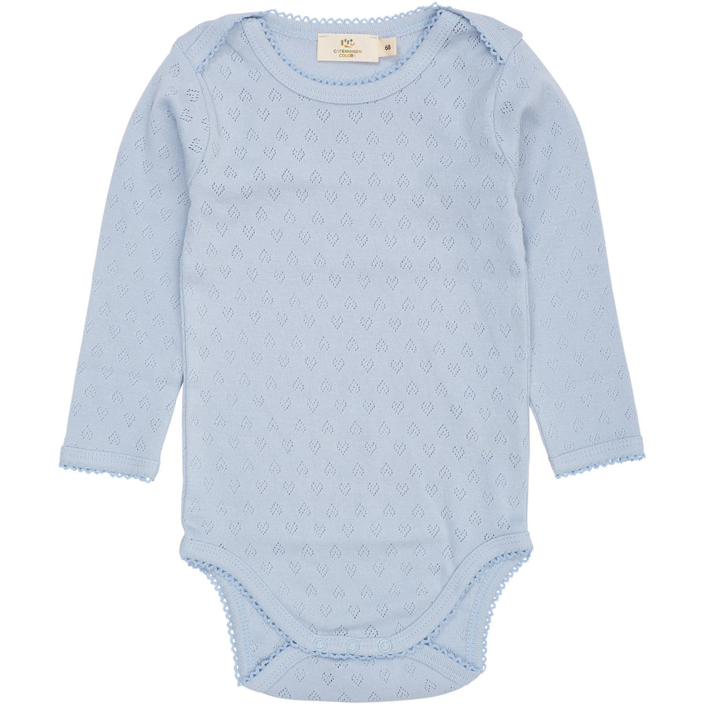 COPENHAGEN COLORS Dusty Blue Pointelle Heart Lapneck Body Ls - 56 er i restordre og vil blive sendt, så snart det er på lager igen.