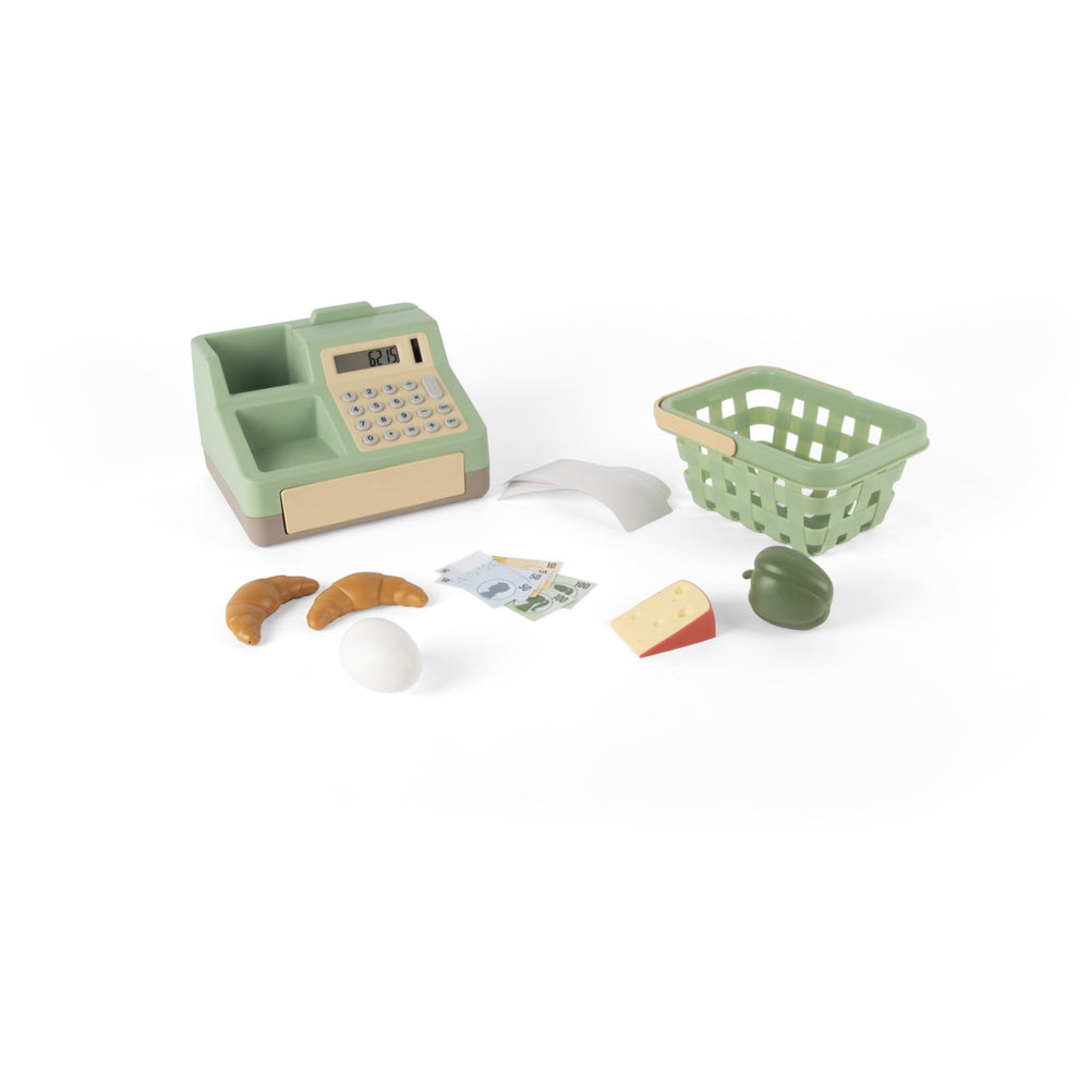 Dette sæt, som er Svanemærket, sikrer ikke kun miljøvenlig leg, men også produktsikkerhed og holdbarhed, så det kan klare mange timers leg. Kasseapparatet og tilbehøret er designet for at fremme både social og kognitiv udvikling, deriblandt færdigheder som kommunikation og problemløsning.