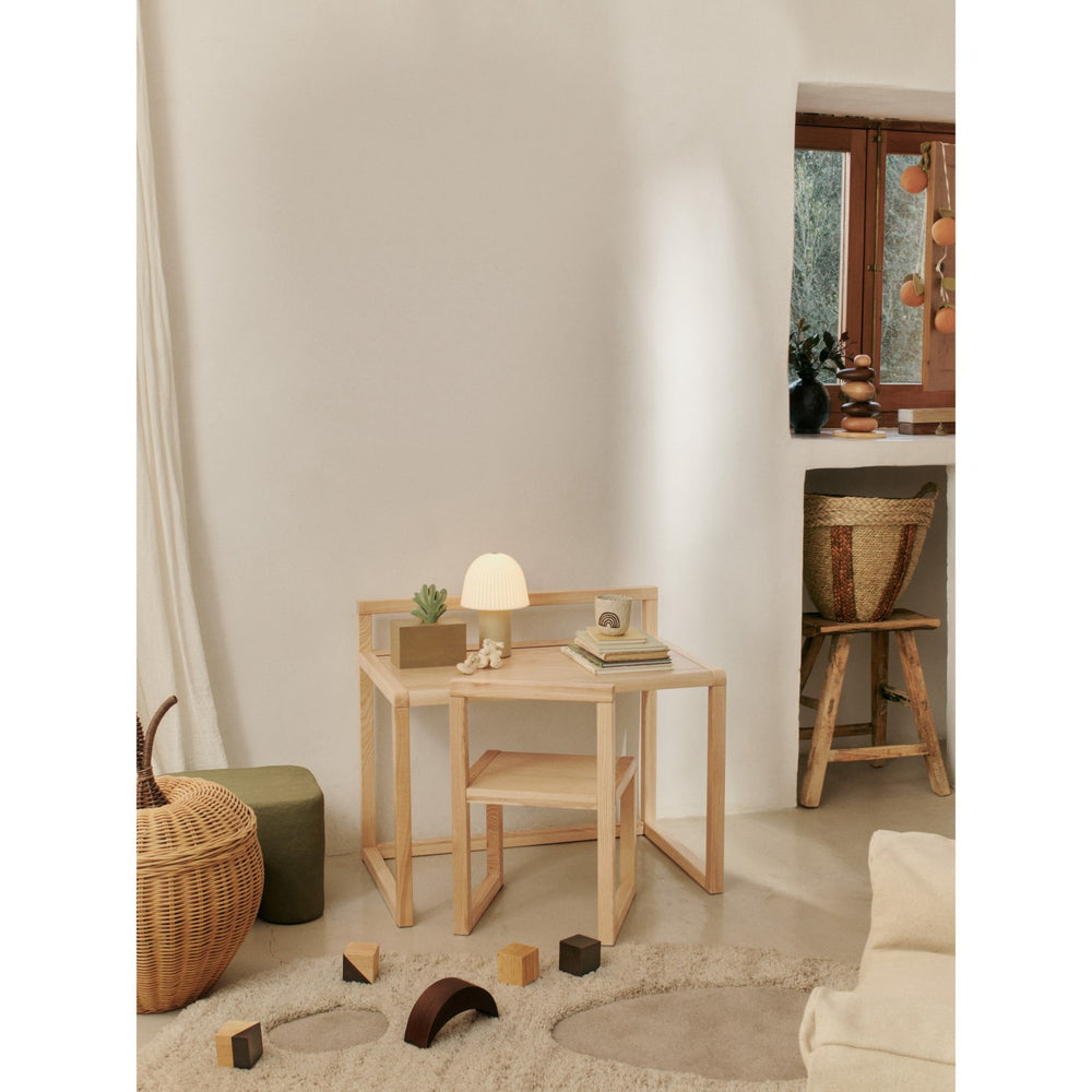 Little Architect Stolen fra Ferm Living tilbyder en perfekt blanding af funktionalitet og æstetik for det moderne børneværelse. Fremstillet af økologisk dyrket FSC-certificeret™ træ og dækket med en fin askefiner, garanterer den både styrke og holdbarhed, værende klar til børns daglige leg og læring. Stolens ergonomiske design sikrer komfort, mens den stilrene fremtoning passer ind i enhver indretning. Den er ideel til alt fra legetid til læring, støtter dit barns kreative udvikling.