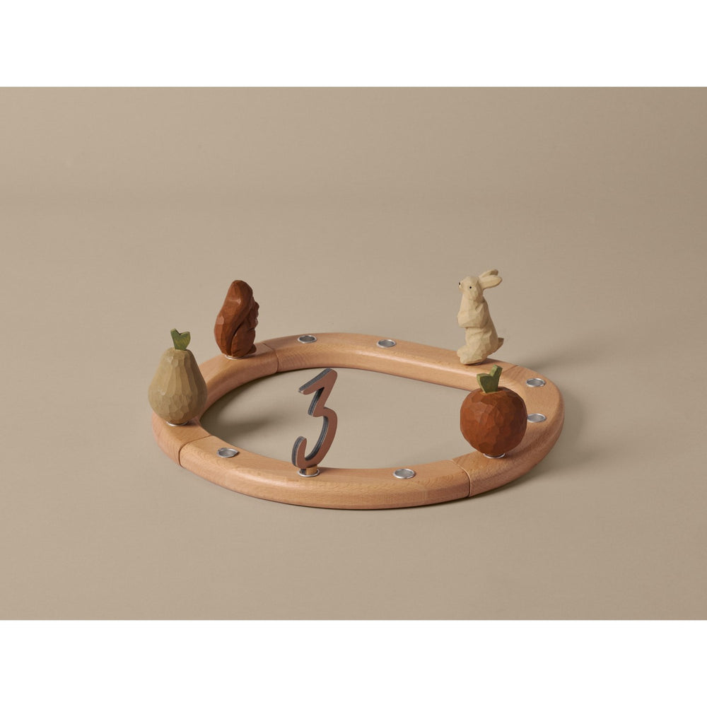 - Materialer: Bundring: FSC-certificeret™ bøgetræ. Indsatser af aluminium. Dyr: FSC-certificeret™ aspetræ. Tal: FSC-certificeret™ krydsfiner