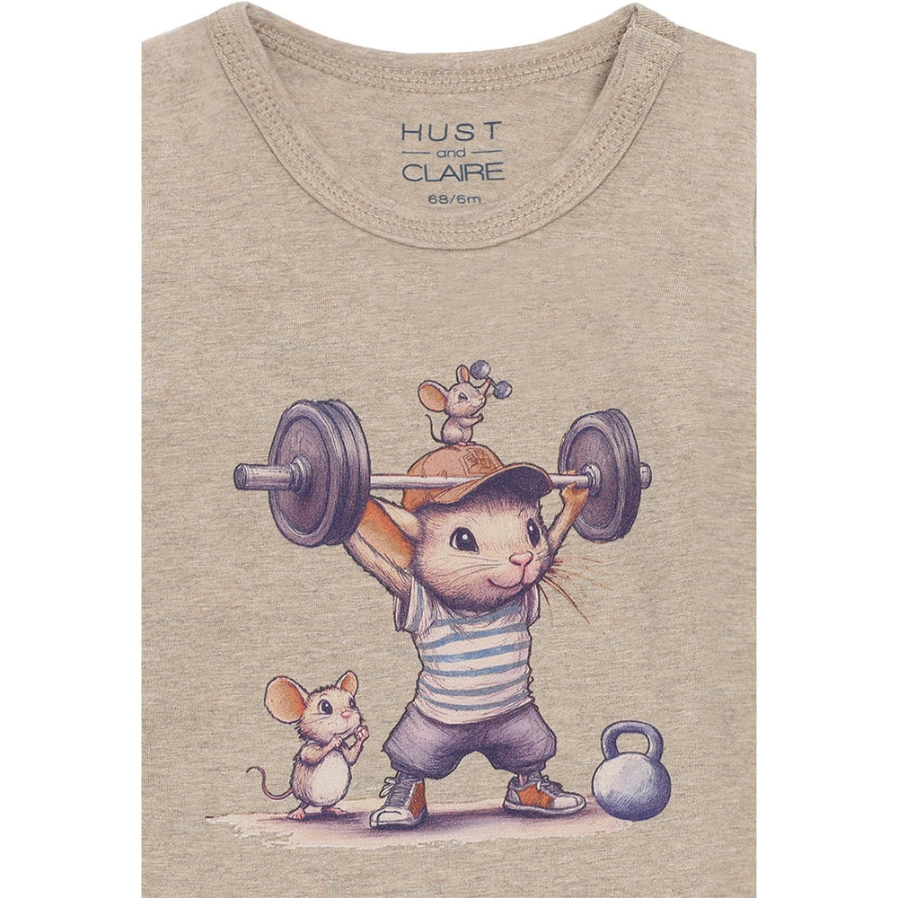 Denne charmerende muse-body fra Hust & Claire, døbt "Billy Strong Mouse", er skabt til at kombinere stil med komfort for dit barn. Den er fremstillet i bløde materialer, designet med et legende musemotiv og har en praktisk pasform, der sikrer både bevægelsesfrihed og komfort. Perfekt til både leg og pause, denne bodystocking er en ideel tilføjelse til børnegarderoben.