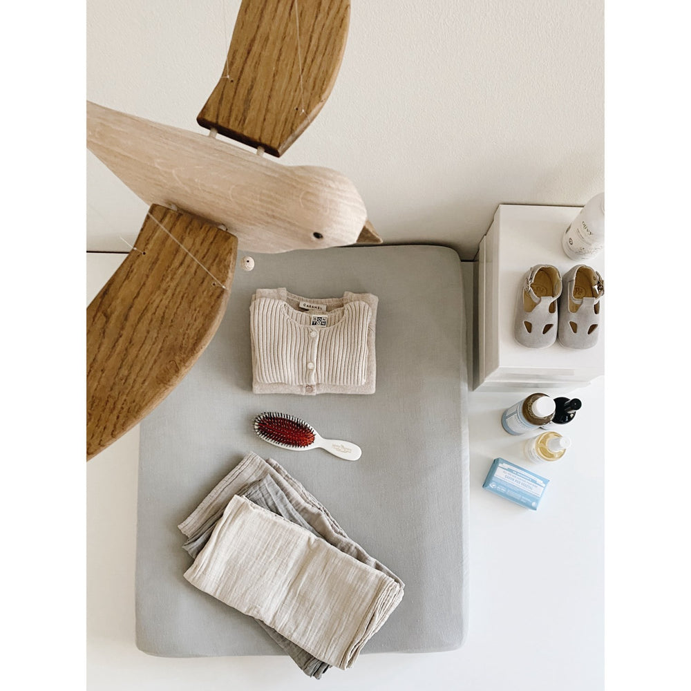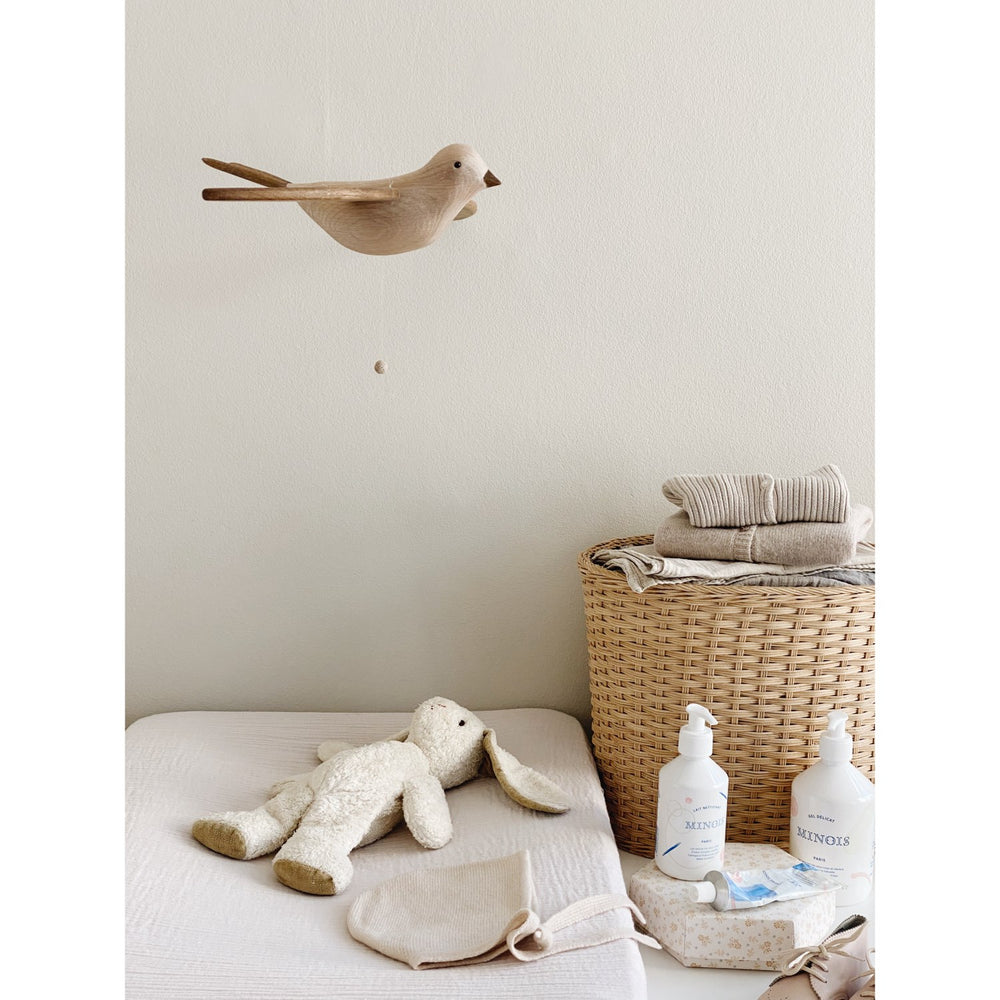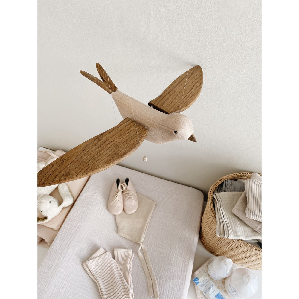 Leg med KAS Kopenhagen Smoked Oak Wings Flying Koko inviterer til nysgerrighed og sanselig opdagelse for de mindste. Denne charmerende uro i røget eg udformet som en fugl, aktiverer barnets syn og koordination, når den bevæger sine vinger. En perfekt placering over babysengen kan berolige og engagere din lille en før søvn. Let at montere og vedligeholde, denne elegante dekoration tilføjer et tidløst touch til ethvert børneværelse, samtidig med at den stimulerer sanserne i de vigtige tidlige udviklingsår. Enkel og sikker, Koko uroen beriger familiens stunder sammen.