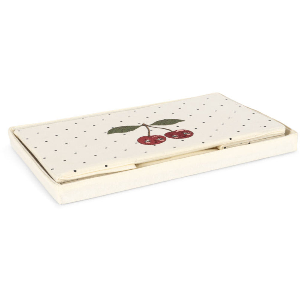 Skab orden og hygge på børneværelset med Konges Sløjd Cherry Opbevaring Kurv Small. Denne charmerende lille kurv er perfekt til at opbevare legetøj, bøger eller småting, som hurtigt kan skabe rod. Fremstillet af 100% økologisk bomuld, er den både skånsom mod barnets omgivelser og nem at håndtere. Kurven kan nemt foldes sammen, så den ikke fylder, når den ikke er i brug. Med sit stilfulde design og praktiske størrelse bidrager den til en både organiseret og indbydende atmosfære i hjemmet.