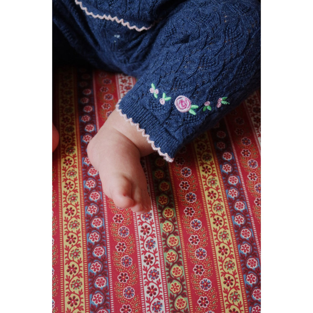 Disse skønne Konges Sløjd Rosier bukser er perfekt til dit barns garderobe. Bukserne er strikket i en unik blanding af 94% bomuld, 3% uld og 3% kashmir, hvilket sikrer både blødhed og holdbarhed. Det detaljerige rosenbroderi ved buksebenenes afslutning tilføjer et stilfuldt og legende touch. Med sit bløde materiale og afslappede pasform er disse bukser ideelle til både leg og afslapning. De er lette at vaske og vedligeholde, hvilket gør dem til et praktisk valg for travle forældre.