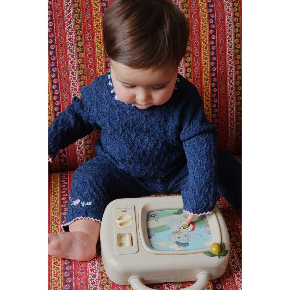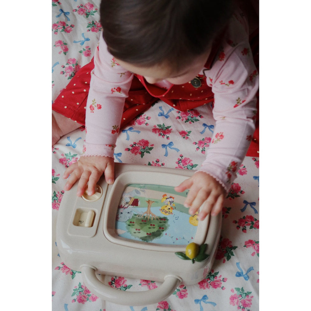 Lad fantasien blomstre med Konges Sløjd Lemon My Melody Tv. Dette charmerende aktivitetslegetøj er designet til små hænder, gør det nemt for dit barn at manipulere og udforske. Ved at dreje på knappen, følger animerede billeder på skærmen med blide melodier, perfekt til at stimulere dit barns syn og hørelse. Kompakt og let, er det nemt at tage med overalt og simpelt at opbevare. Et ideelt legetøj der styrker båndet mellem jer, samtidig med at det underholder og beroliger.