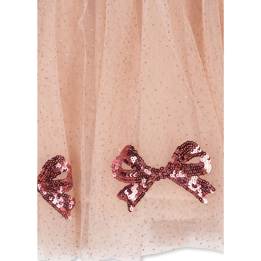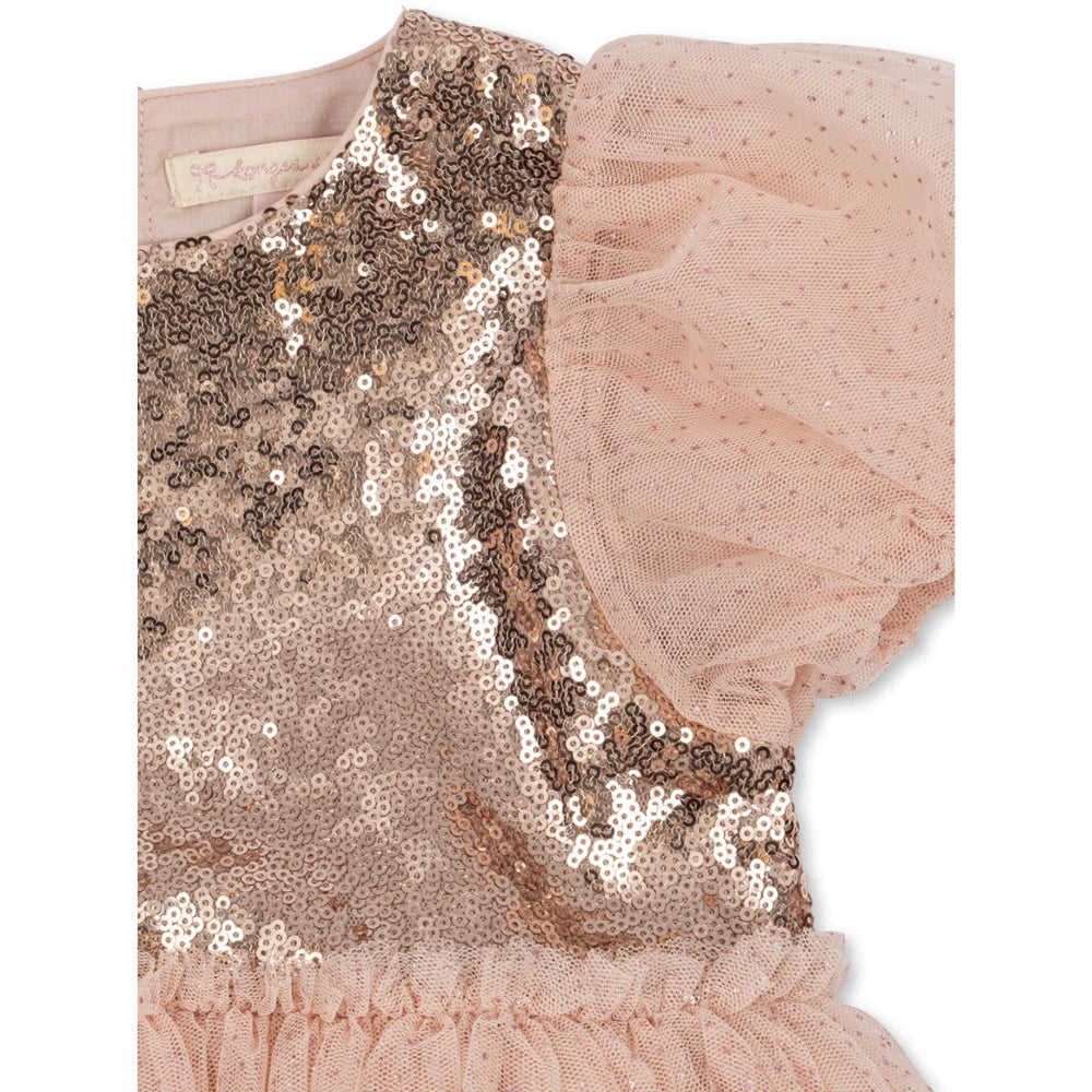 Konges Sløjd Smoke Gray Mei Kjole forener elegance og legefuldhed, ideel til enhver festlig begivenhed. Denne kjole, med sine glitrende pailletter på pufærmerne og et flerlaget tylskørt, skaber en betagende silhuet. Kjolen, der lukkes med knapper på bagsiden, er fremstillet af 100% polyester og har et for af 100% bomuld, hvilket sikrer både komfort og holdbarhed.