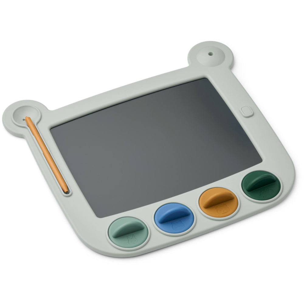 LIEWOOD Dove Blue Multi Mix Venzora Magic Tegnetavle W Stamps er en ideel legekammerat for børn, der elsker at tegne og udtrykke sig kreativt. Med sin brugervenlige skærm og nutidige design er denne tegnetavle perfekt til små hænder. Den medfølgende pen og de fire sjove silikonestempler fremmer finmotorikken og bidrager til udviklingen af kreative evner. Let at bære, rense og opbevare, sikrer den endeløs underholdning hjemme og på rejser. Denne tegnetavle er et fremragende supplement til ethvert hjem, der vægter kvalitetstid og udvikling gennem leg.