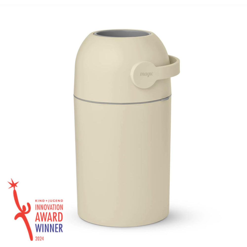 Magic Beige Majestic Blespand er en praktisk løsning til forældre, der vil slippe for lugt og samtidig have en hverdag, der glider lettere. Spanden er konstrueret til at lukke effektivt af, så bleerne ikke sætter præg på luften i børneværelset.
