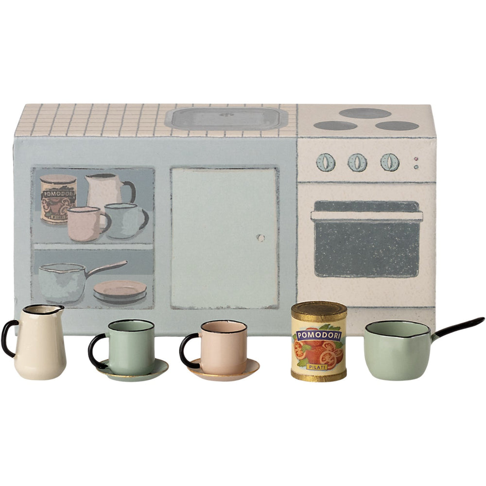 Giv legen liv med Maileg Køkkenbord, Mus! Dette charmerende sæt er perfekt til små hænder og fremmer både kreativitet og rollespil. Indeholder alt til et komplet musekøkken - kopper, tallerkener, en gryde, kande og en dekorativ dåse – alle dele er designet i holdbare materialer, sikre for børn at lege med. Det autentiske metal vask tilføjer en realistisk detalje, der vil begejstre. Let at rengøre og ideelt til ethvert børneværelse. Sættet indbyder til timevis af underholdende familiehygge.