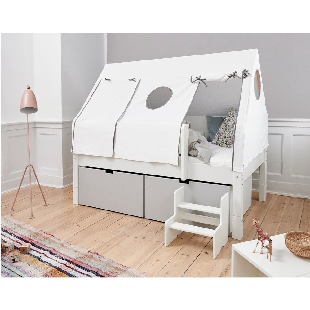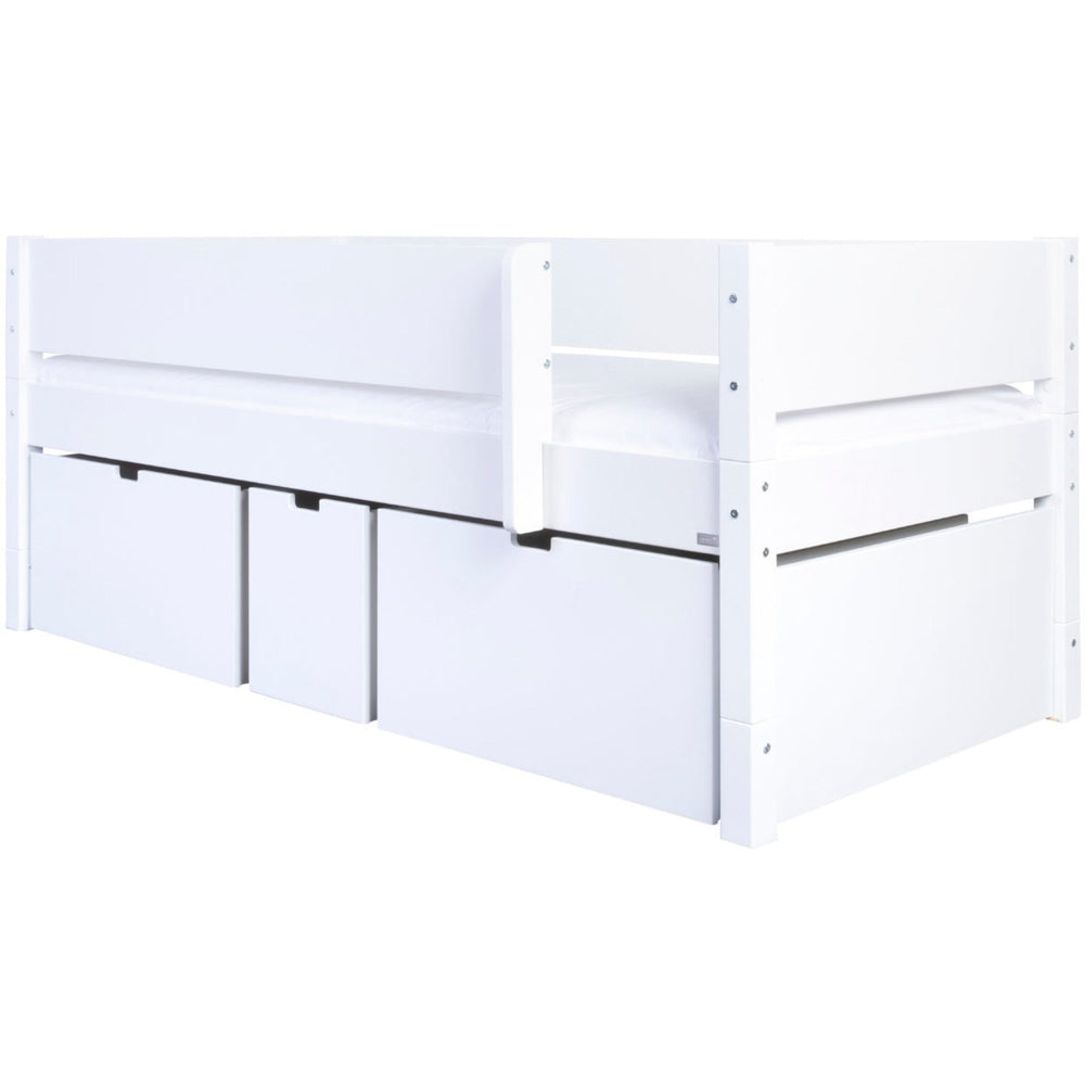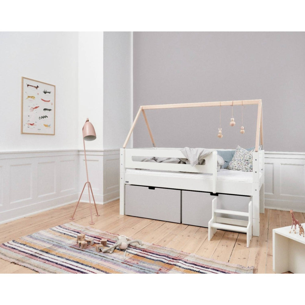 Nanna-sengen kombinerer stil og funktionalitet, ideel for ethvert børneværelse. Med sine indbyggede, rummelige skuffer under sengen tilbyder denne seng en smart opbevaringsløsning, der hjælper med at holde rummet pænt og organiseret. Designet i en diskret Snow White farve, passer den nemt ind i enhver indretning og skaber en følelse af ro. Sengen er også bygget til at sikre dit barns komfort og sikkerhed, hvilket gør den til et betroet valg for familien.