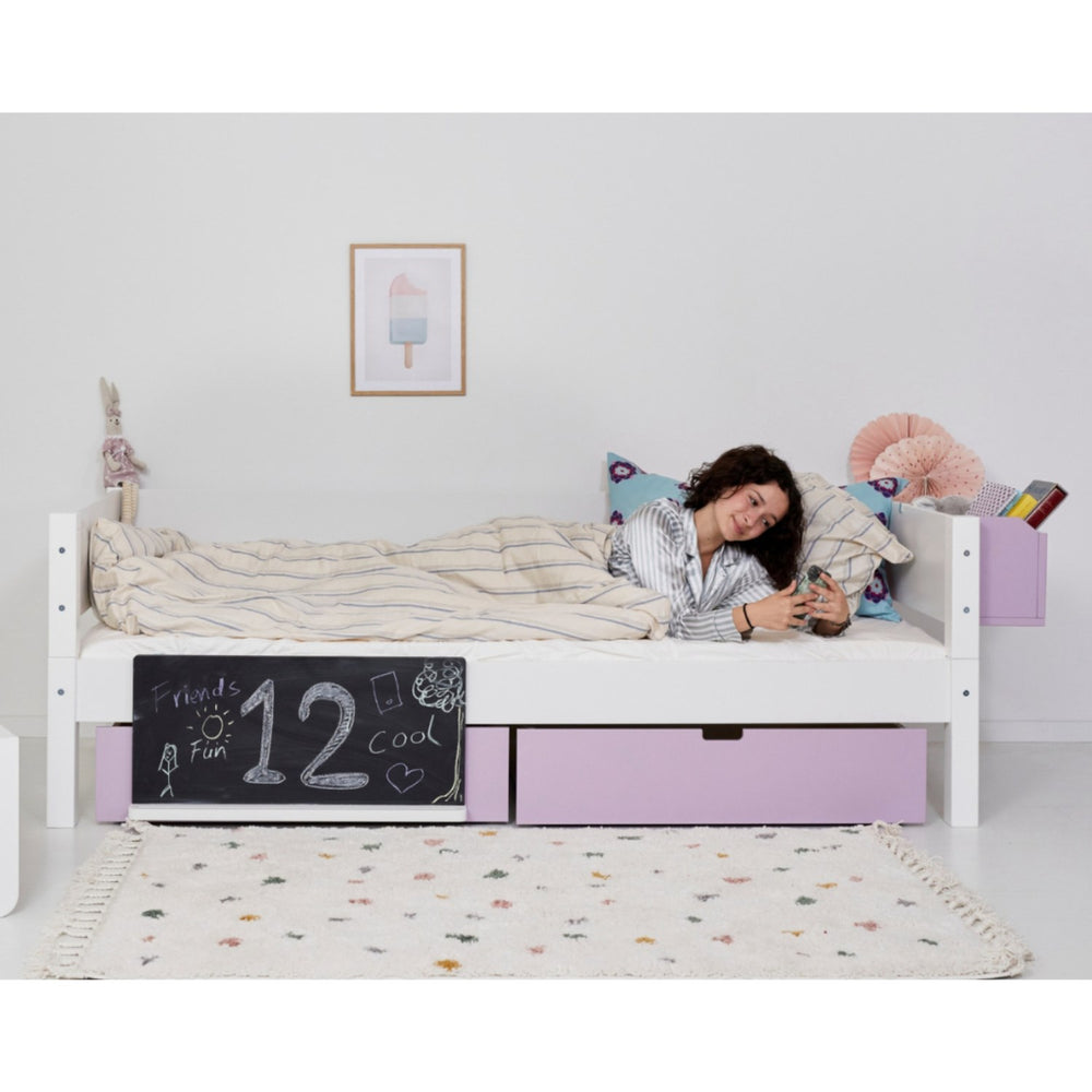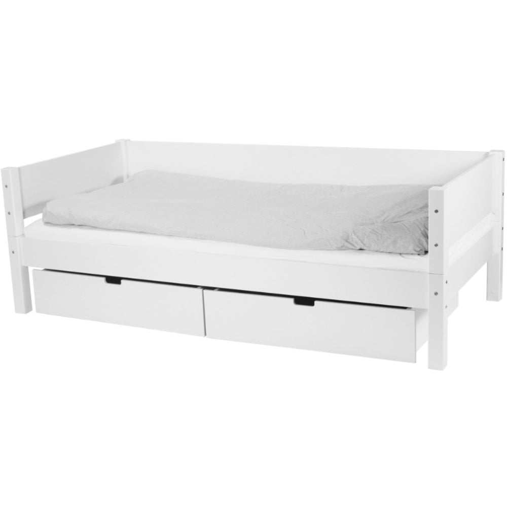 Giv dit barn den perfekte start med Manis-h Snow White Sif Børneseng. Denne robuste enkeltseng er designet med en stabil lamelbund og praktiske opbevaringsskuffer, ideel til at holde børneværelset organiseret. Sengens enkle, hvide design passer ind i ethvert rum og vokser med dit barn, takket være de tilpasningsdygtige tilbehørsmuligheder. Sif Børneseng sikrer en tryg og behagelig søvn, hvilket bidrager til en mere harmonisk hverdag for hele familien.
