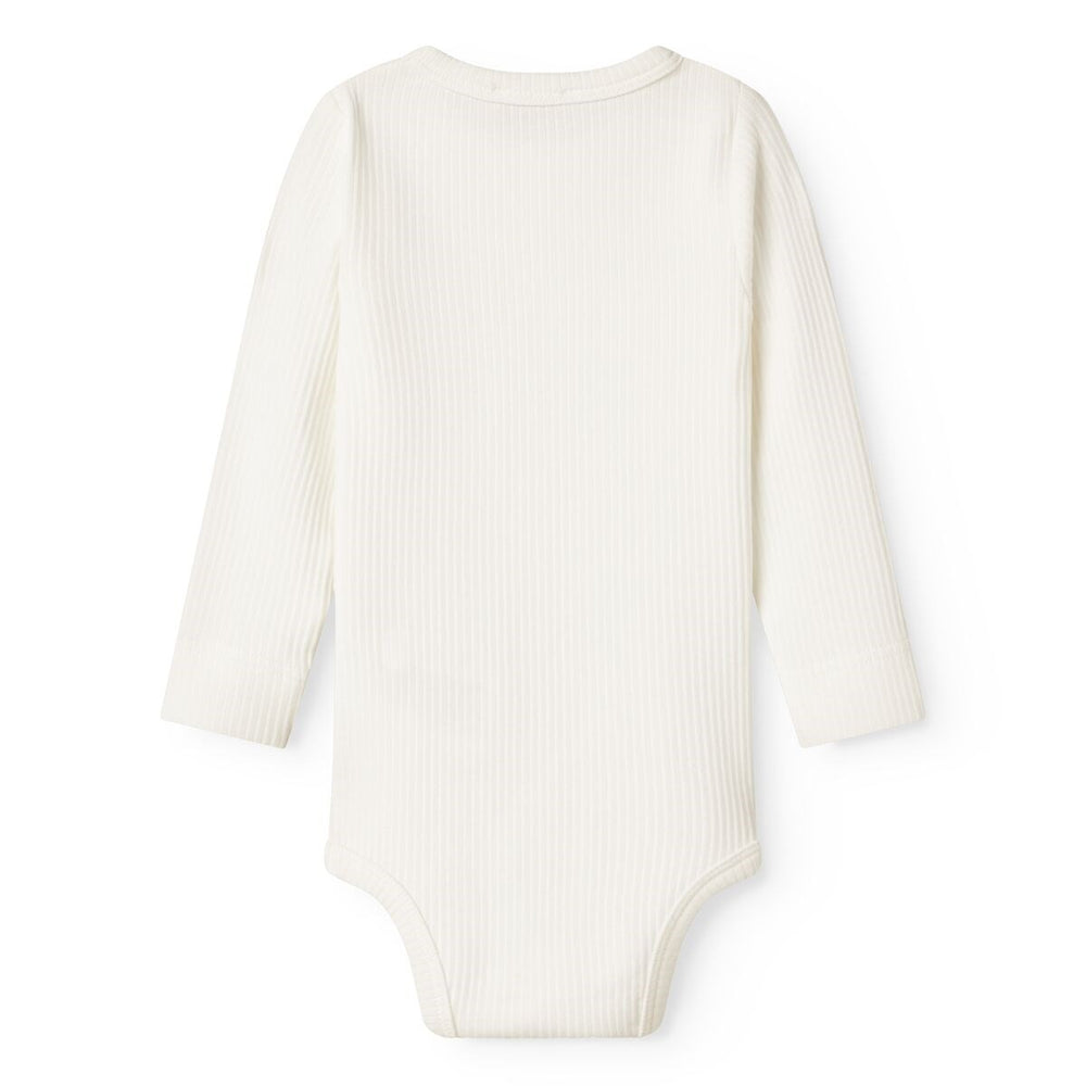 Denne langærmede, ensfarvede body fra MarMar er fremstillet i blødt modal, hvilket sikrer optimal komfort og holdbarhed. Praktiske trykknapper i skridtet gør den ideel til hurtige ble-skift. Gentle White farven giver et rent og klassisk look, perfekt til hverdagsbrug. Passer til spædbørn og småbørn.