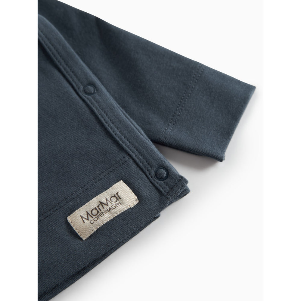 Denne langærmede omslagsbluse i blå til nyfødte er designet med praktiske trykknapper og bånd, der gør påklædning og skift nemmere. Tøjet er fremstillet med fokus på pasform og komfort, ideelt til hverdagsbrug. Mærket MarMar er kendt for sin kvalitet og stil, hvilket gør denne bluse til et fremragende valg for de mindste.