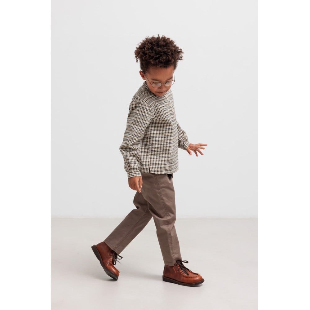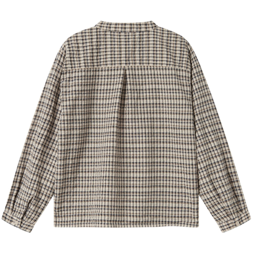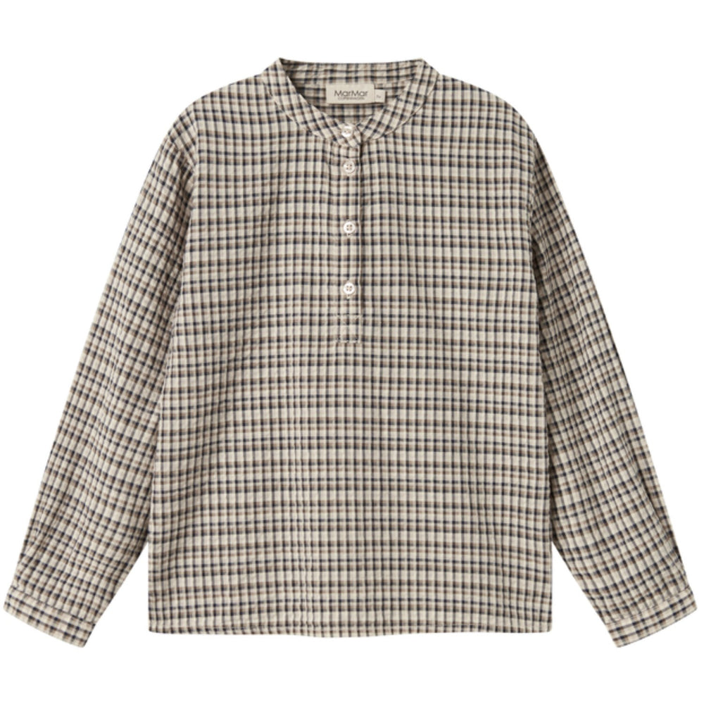 Oplev denne charmerende MarMar seersucker-skjorte i stilfuldt navy check mønster. Fremstillet i behageligt, let materiale, er denne langærmede mao-skjorte ideel til børnenes hverdag. Med sin klassiske knaplukning og tidløse design, tilbyder den både elegance og funktionalitet. Passer perfekt til enhver lejlighed og er nem at vedligeholde.
