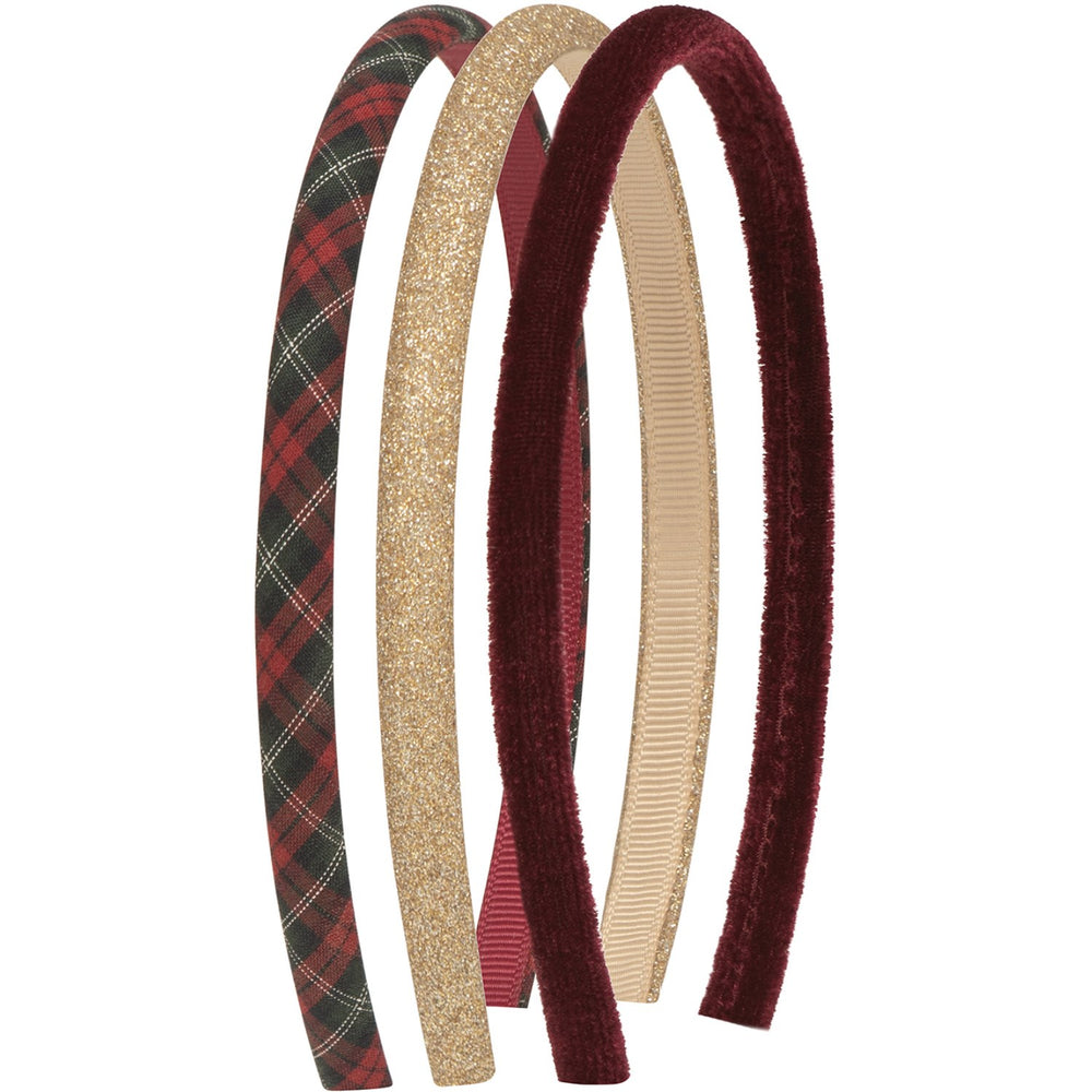 Skab et charmerende look for dit barn med Mimi & Lula hårbøjler. Dette sæt inkluderer 3 hårbøjler, der er betrukket med henholdsvis skotskternet, guldglimmer og bordeaux stof, hvilket tilføjer et festligt touch til enhver påklædning. Perfekt til hverdagsbrug eller specielle lejligheder, disse hårbøjler kombinerer holdbarhed med en komfortabel pasform, der sikrer, at de bliver siddende uden at stramme.