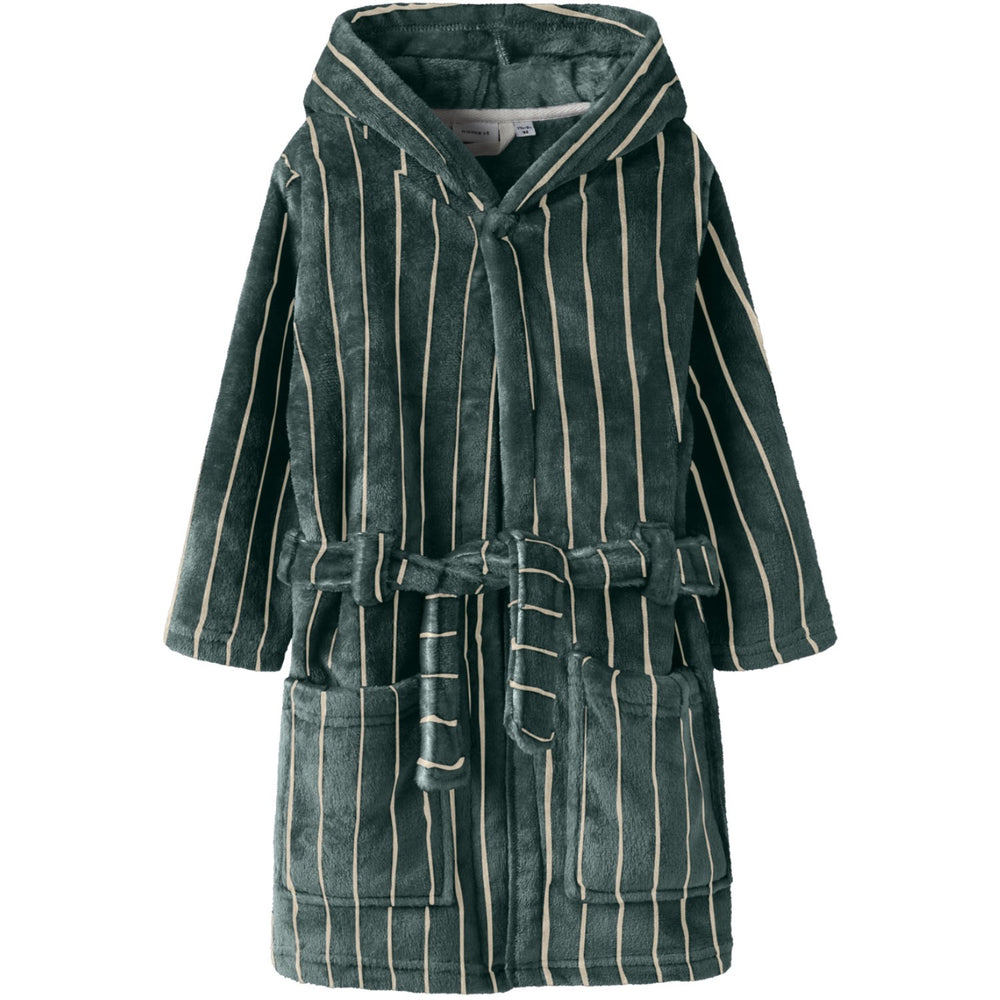 Denne Name It Bistro Green Nmmracer morgenkåbe i fleece er perfekt til de små. Materialet er behageligt let og blødt, ideelt til at holde børnene varme. Designet inkluderer praktiske forlommer og en nem trykknaplukning, samt et løst bælte, der sikrer god pasform. Farven og det enkle design gør den til et populært valg for både drenge og piger.