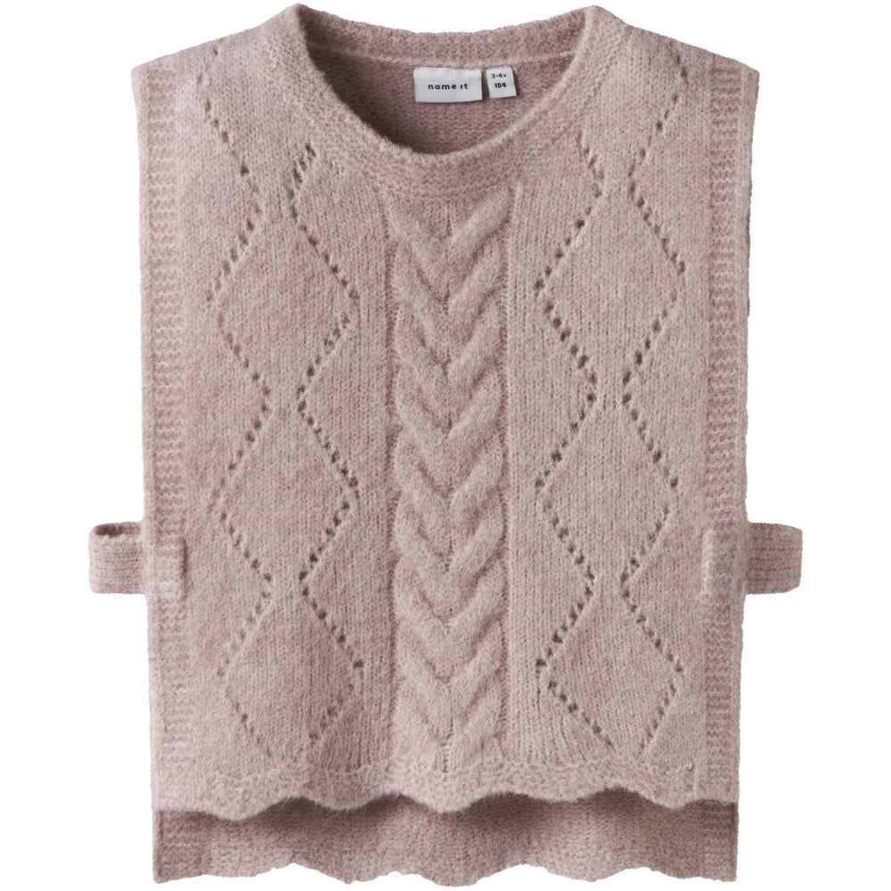 Gør din lille en både stilfuld og komfortabel med denne strikkede vest fra Name It i farven 'Burnished Lilac'. Denne ærmeløse vest har en klassisk rund hals og en almindelig pasform, der sikrer en behagelig brug hele dagen. Det åbne knit-design tilføjer en blød og luftig følelse, som er perfekt til lag-på-lag påklædning. Vælg denne alsidige vest for en både praktisk og charmerende tilføjelse til barnets garderobe.