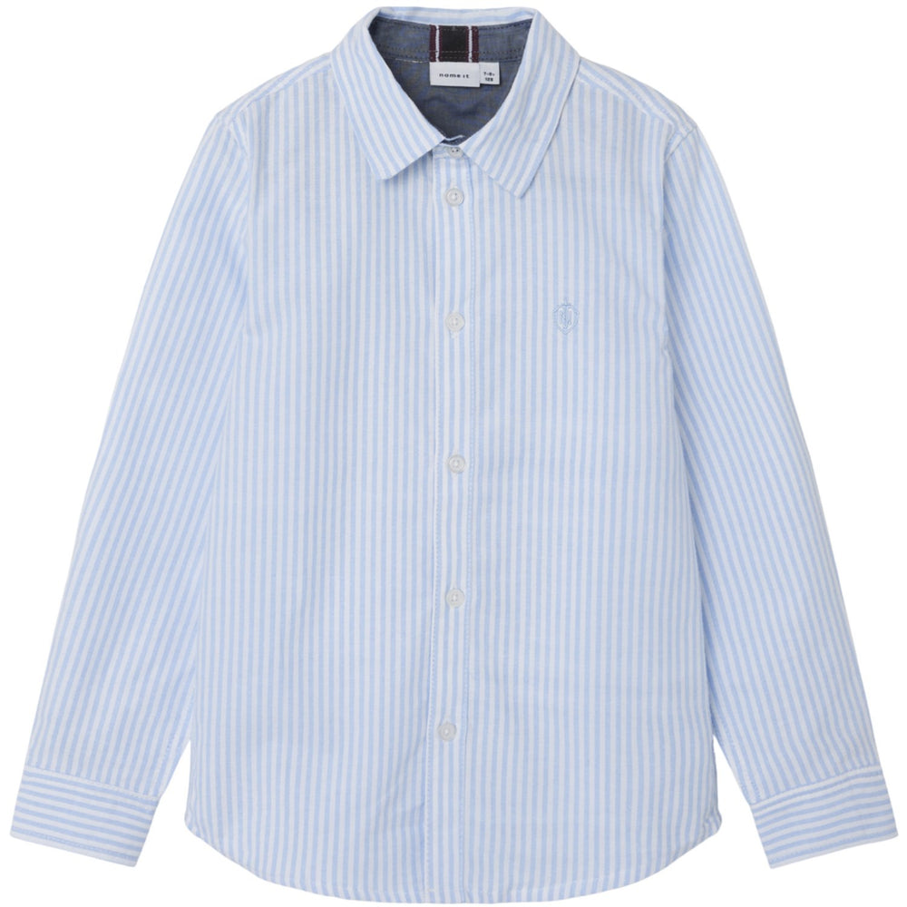 Denne elegante Name It Campanula Newsa Skjorte Noos er perfekt til dit barns garderobe. Fremstillet i behageligt Oxford-stof, sikrer den en klassisk stil med sin tofarvede vævning og strukturerede overflade. Skjorten har en traditionel skjortekrave, lange ærmer og knapmanchetter, hvilket tilføjer et stilet touch. Det diskrete broderi forøger elegance, mens den almindelige pasform garanterer komfort hele dagen. Ideel til både festlige begivenheder og formelle sammenkomster.