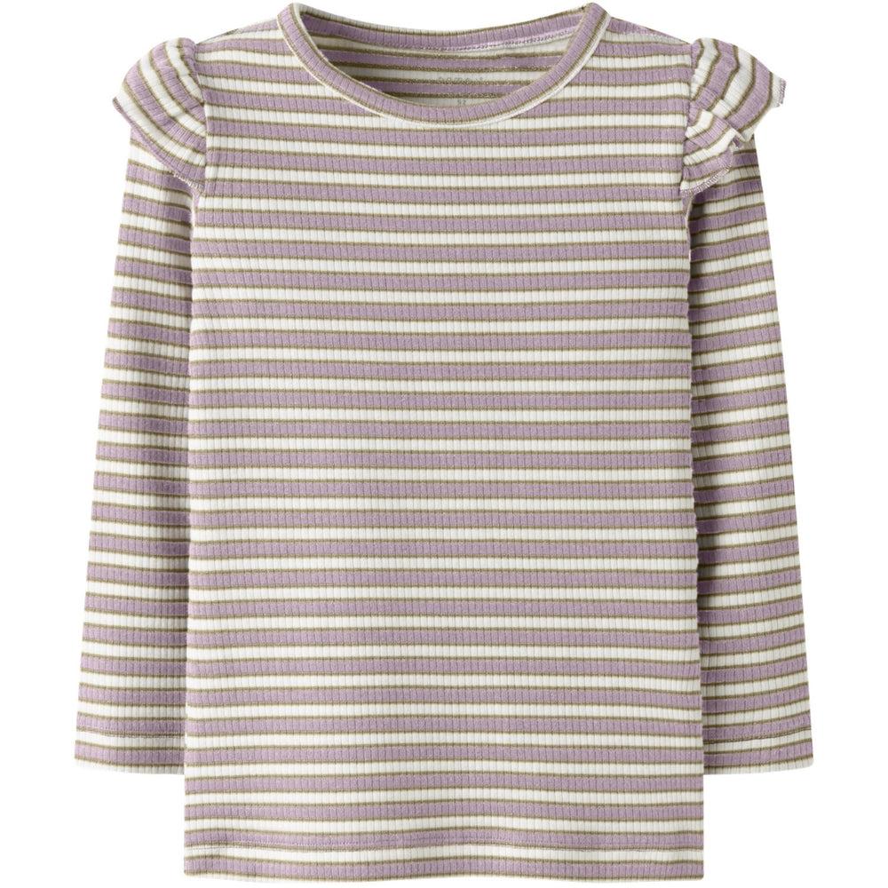 Klæd dit barn i vores Name It Dawn Pink Cloud Dancer Nmftaias Ls Slim Top, en topkvalitet bluse der kombinerer komfort og stil. Denne slim fit bluse med rund hals og lange ærmer, fremhævet med flæser og fine glitter detaljer, sikrer et charmerende udseende. Fremstillet i blødt ribstrik med lodrette striber, tilbyder den både holdbarhed og elastisk pasform for optimal bevægelsesfrihed. Perfekt til hverdagsbrug og særlige begivenheder.