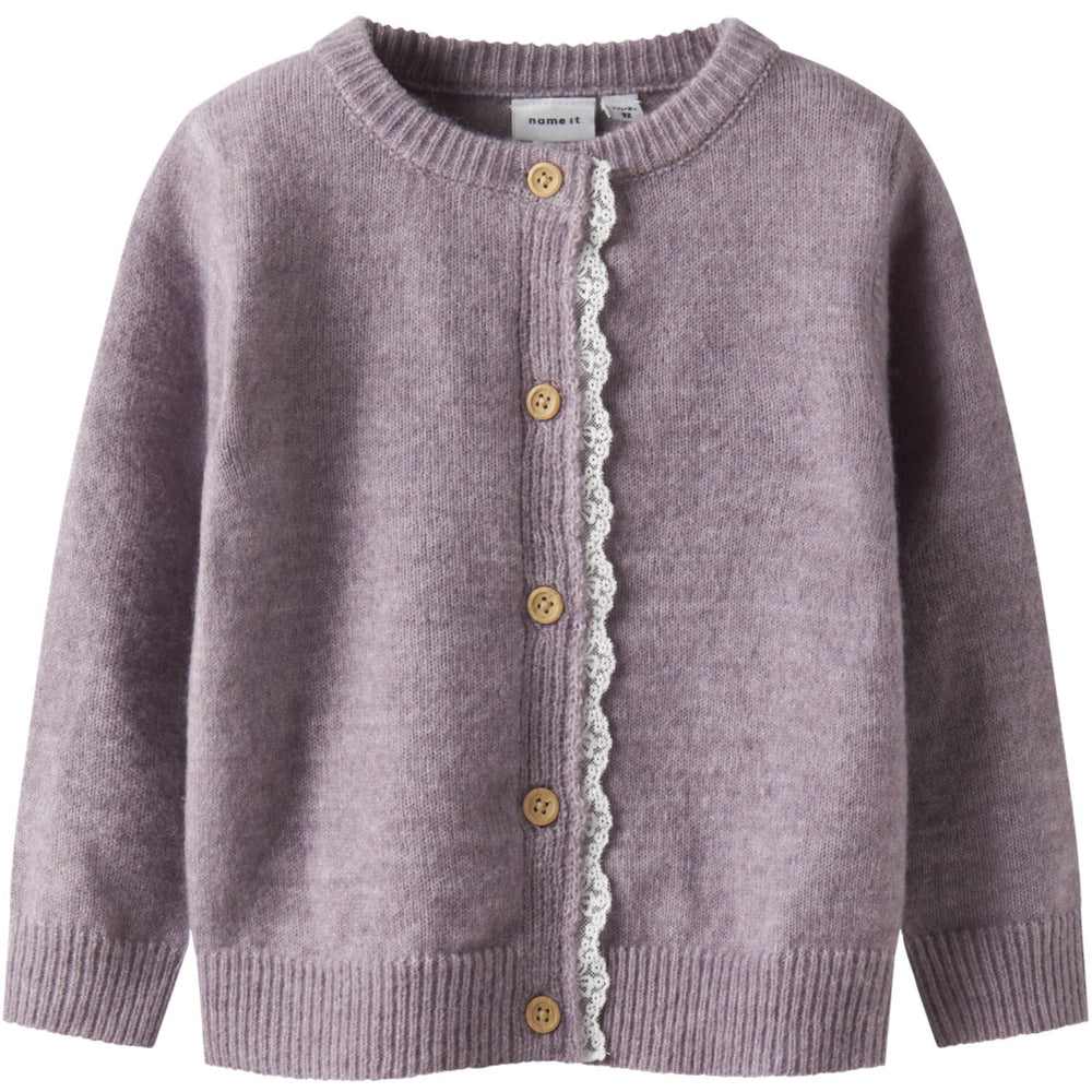 Giv dit barn varmen med denne charmerende strikkede cardigan fra Name It. Cardiganen er udført i behåret strik med en blød og fluffy overflade, som sikrer en behagelig følelse. Designet omfatter en klassisk O-hals, lange ærmer med ribmanchetter og praktisk knaplukning foran. Det tilføjer en sød blondedetalje, der fuldender det stilfulde udtryk. Den almindelige pasform og de alsidige lilafarvede nuancer gør den ideel til både skole og fritidsbrug.