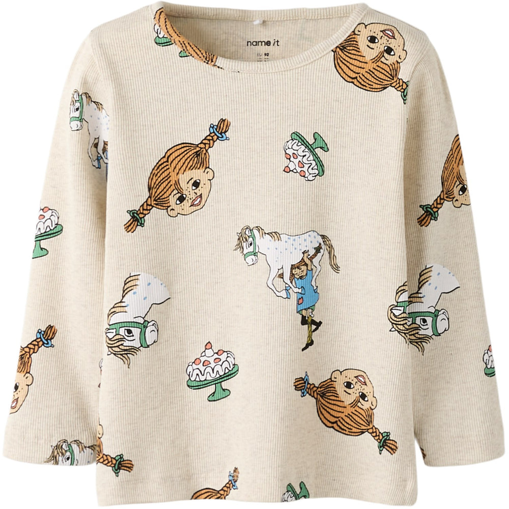 Forkæl dit barn med Name It Peyote Melange Nmfsoca Pippi Ls Top i Sky. Denne bluse har lange ærmer og er fremstillet i blødt ribstrikket materiale, hvilket sikrer både komfort og holdbarhed. Med dens runde hals og almindelige pasform tilbyder den ideel bevægelsesfrihed, perfekt til aktive børn. Mønstret med gentagne prints giver et charmerende og moderigtigt udtryk, der gør den velegnet til både hverdag og festlige lejligheder. Hold denne top væk fra ild.