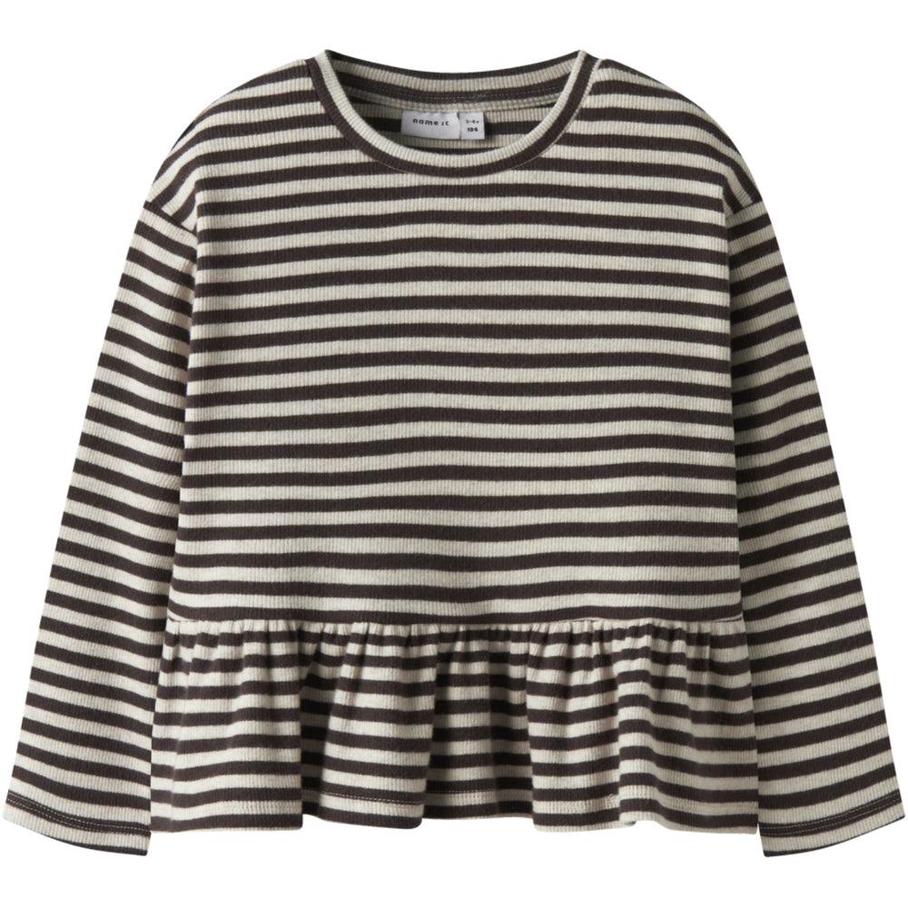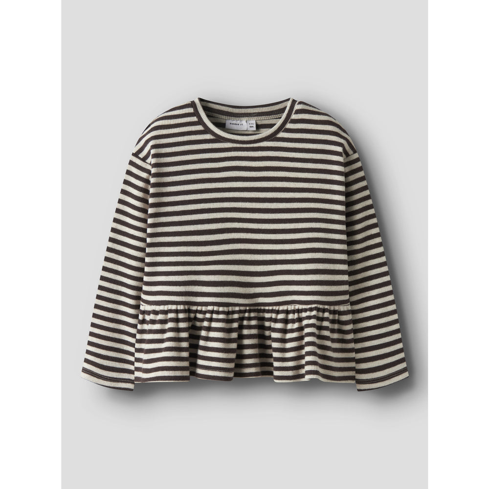 Gør hverdagen lidt sjovere og mere farverig for dit barn med Name It Peyote Seal Brown Nmfluna Top. Denne charmerende bluse er fremstillet i garnfarvet stof, som sikrer holdbare og klare farver på både for- og bagside. T-shirten har en rund halsudskæring og lange ærmer med sænkede skuldre, hvilket tilføjer et moderne touch. Peplum-detaljen på tøjet understreger en sød stil, mens den almindelige pasform sikrer komfort hele dagen. Velegnet til både skole og fritid.