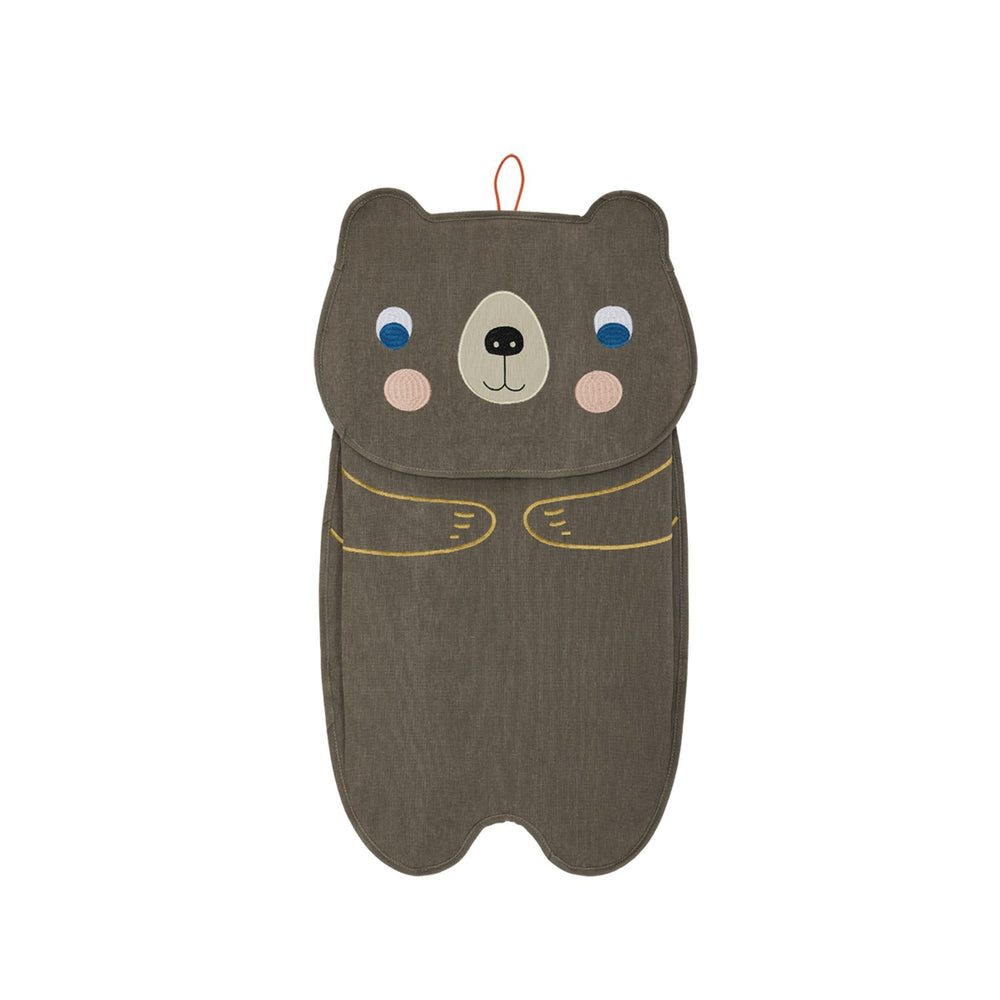 Med OYOY Brown Darling Bjørn Vægopbevaring bliver oprydningen en fornøjelse. Dette charmerende opbevaringssystem er designet til kreativt og effektivt at udnytte pladsen i børneværelset. Fremstillet i blød bomuld med en robust, PE-belagt bagside sikrer det langvarige brug og nem rengøring. Med et indbydende design, inklusiv et broderet bjørneansigt, tilføjer det både funktionalitet og en hyggelig atmosfære til rummet. Ideelt til opbevaring af legetøj og bøger, samtidig med at det er let at montere med dens nylonløkke. En praktisk løsning der hjælper hele familien med at holde styr på tingene.