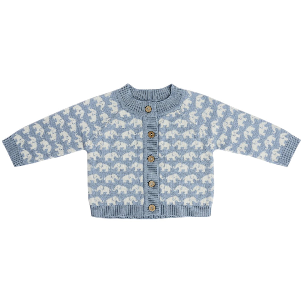 Smallstuff Blue Cardigan Ao Elefanter Merino Uld