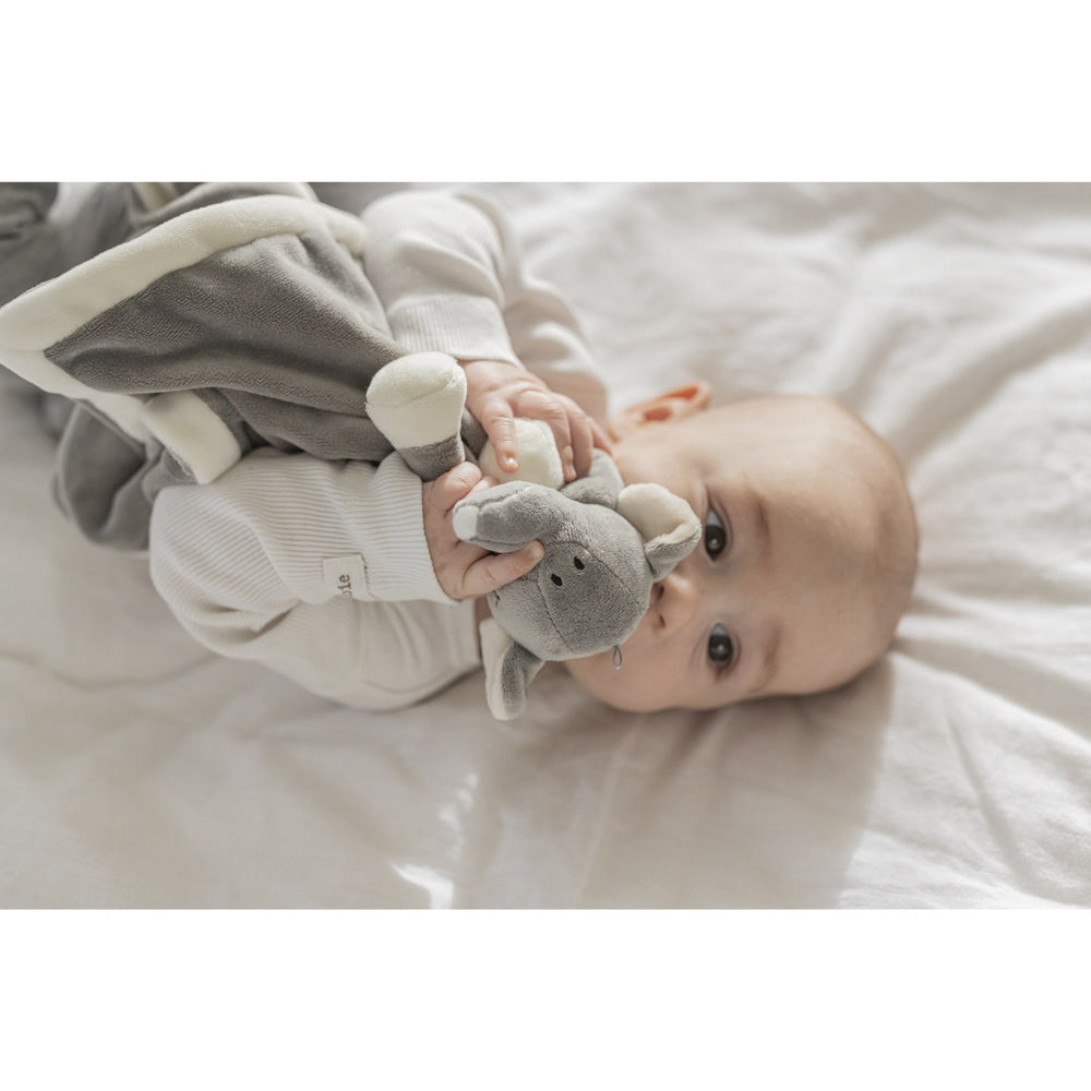 Forkæl dit barn med Teddykompaniet Grå Diinglisar Nusseklud i form af en charmerende grå elefant. Denne nusseklud er lavet af blødt materiale, designet til at berolige og trøste dit barn dag og nat. Med broderede detaljer og et venligt smil, tilbyder den både visuel stimulering og en følelse af tryghed. Let at gribe for små hænder og ideel til kæletid, hvilket gør den til det perfekte tilbehør i krybben eller på farten. En ideel gave til enhver anledning, der støtter barnets følelsesmæssige udvikling og styrker båndet mellem forælder og barn.