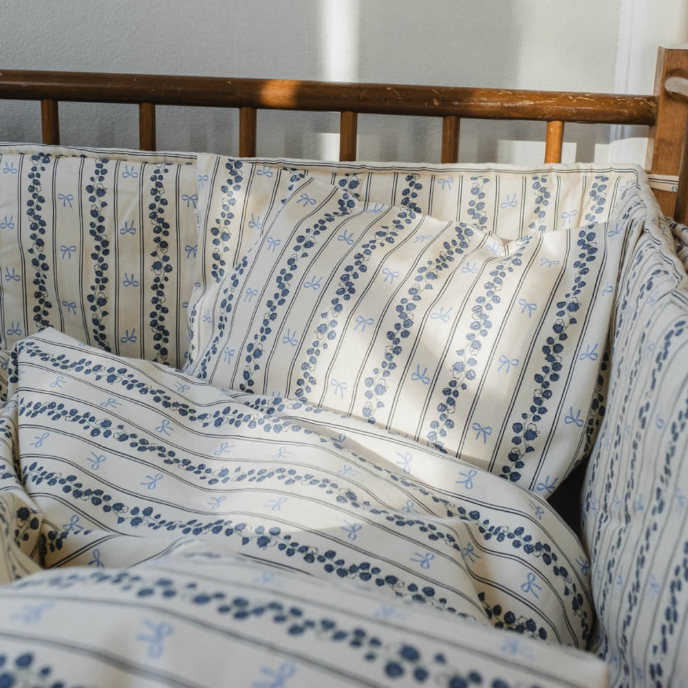 Giv dit barn en tryg nattesøvn med That's Mine Bell Flower Lotus sengerand. Denne smarte sengerand beskytter dit barn mod hårde stød mod tremmesengens kanter og sikrer, at sutten ikke forsvinder i løbet af natten. Med praktiske snore til justering kan du nemt tilpasse beskyttelsen efter behov, hvilket giver ekstra fleksibilitet og sikkerhed. Fremstillet af åndbart genbrugt polyester, garanterer denne sengerand god luftcirkulation, også når barnet ligger tæt op ad den. Forældre vil sætte pris på det lette vedligehold og de charmerende designmuligheder, der komplementerer ethvert børneværelse.