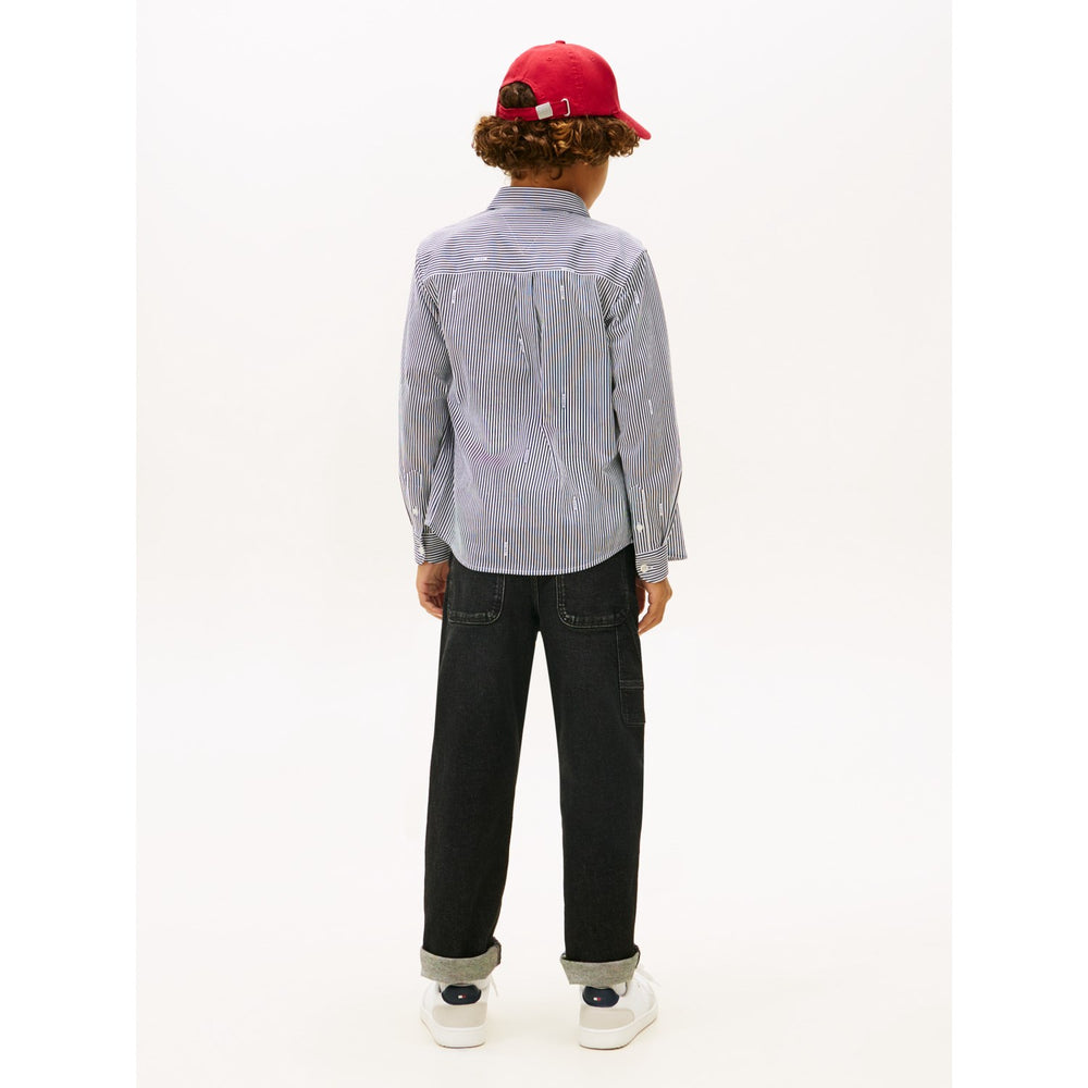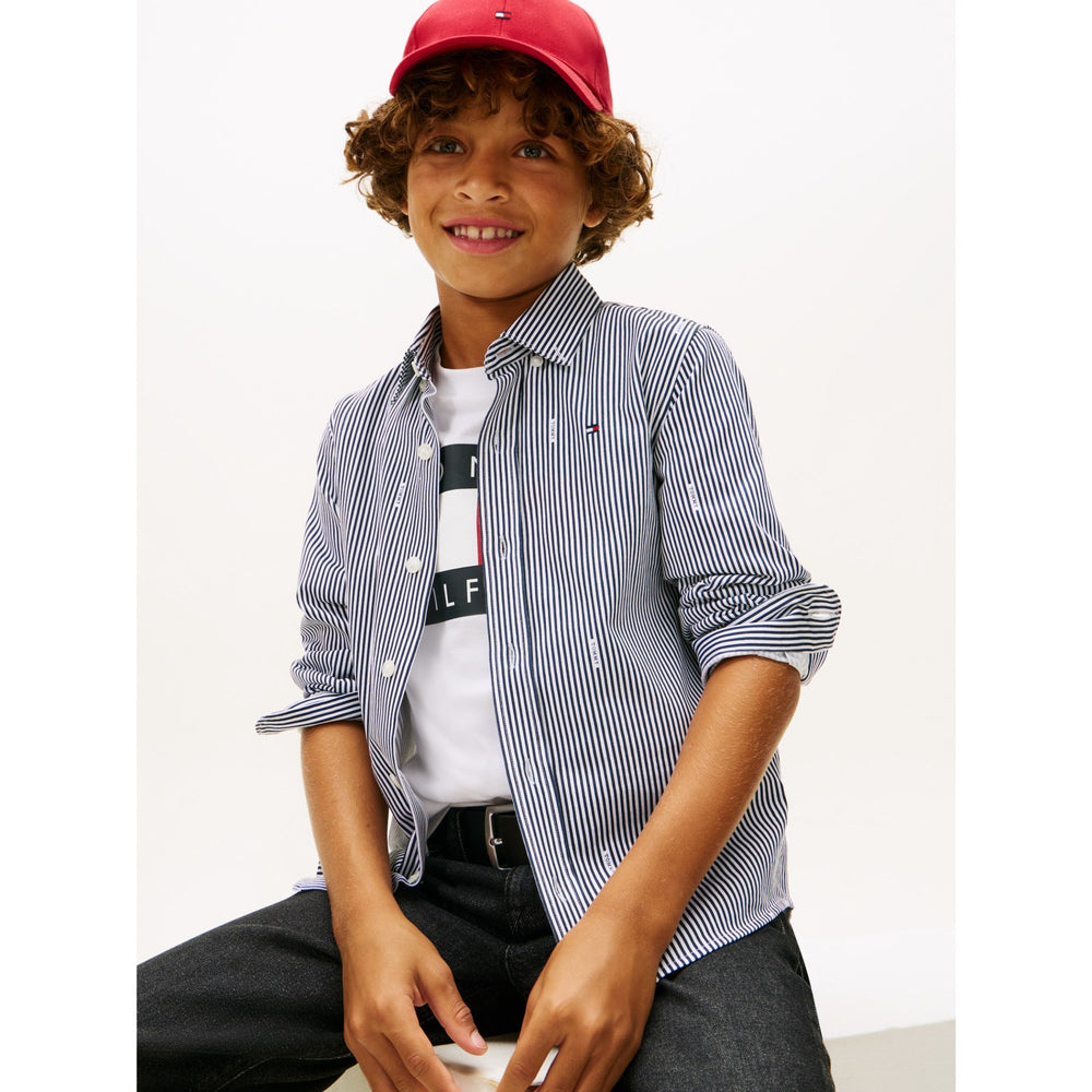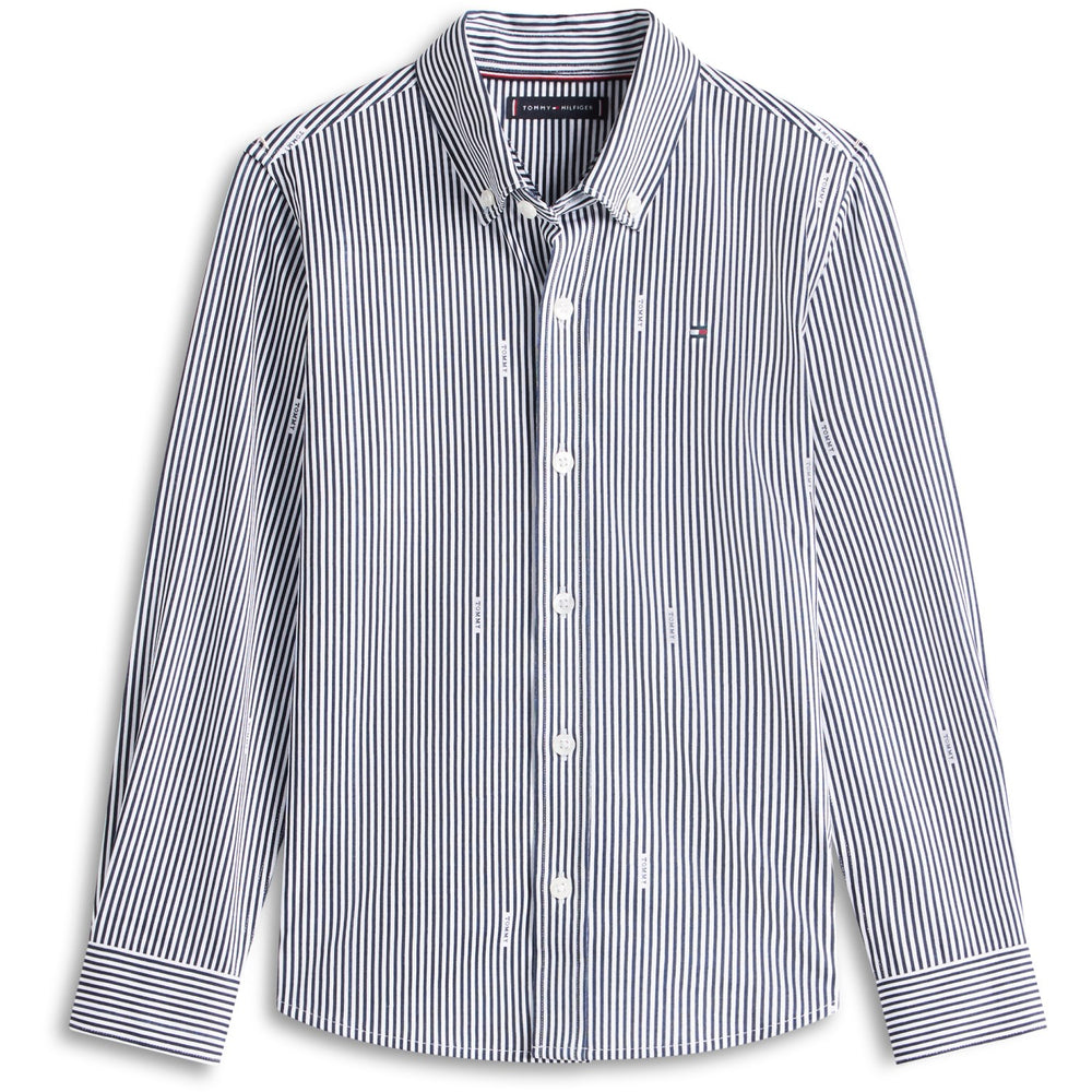 Tilpas dit barn med stil og komfort med Tommy Hilfiger Dark Night Navy White Stripe Aop Jersey Skjorte. Dette design kombinerer mørkeblå og hvid i en klassisk stribet mønster, der oser af tidløs elegance. Fremstillet i blødt jersey materiale, sikrer skjorten optimal komfort og bevægelsesfrihed. Ideel til både skole og fritidsaktiviteter, tilbyder denne skjorte en afslappet pasform, der passer perfekt til børn. Let at vedligeholde, den er maskinvaskbar og holder formen efter vask.