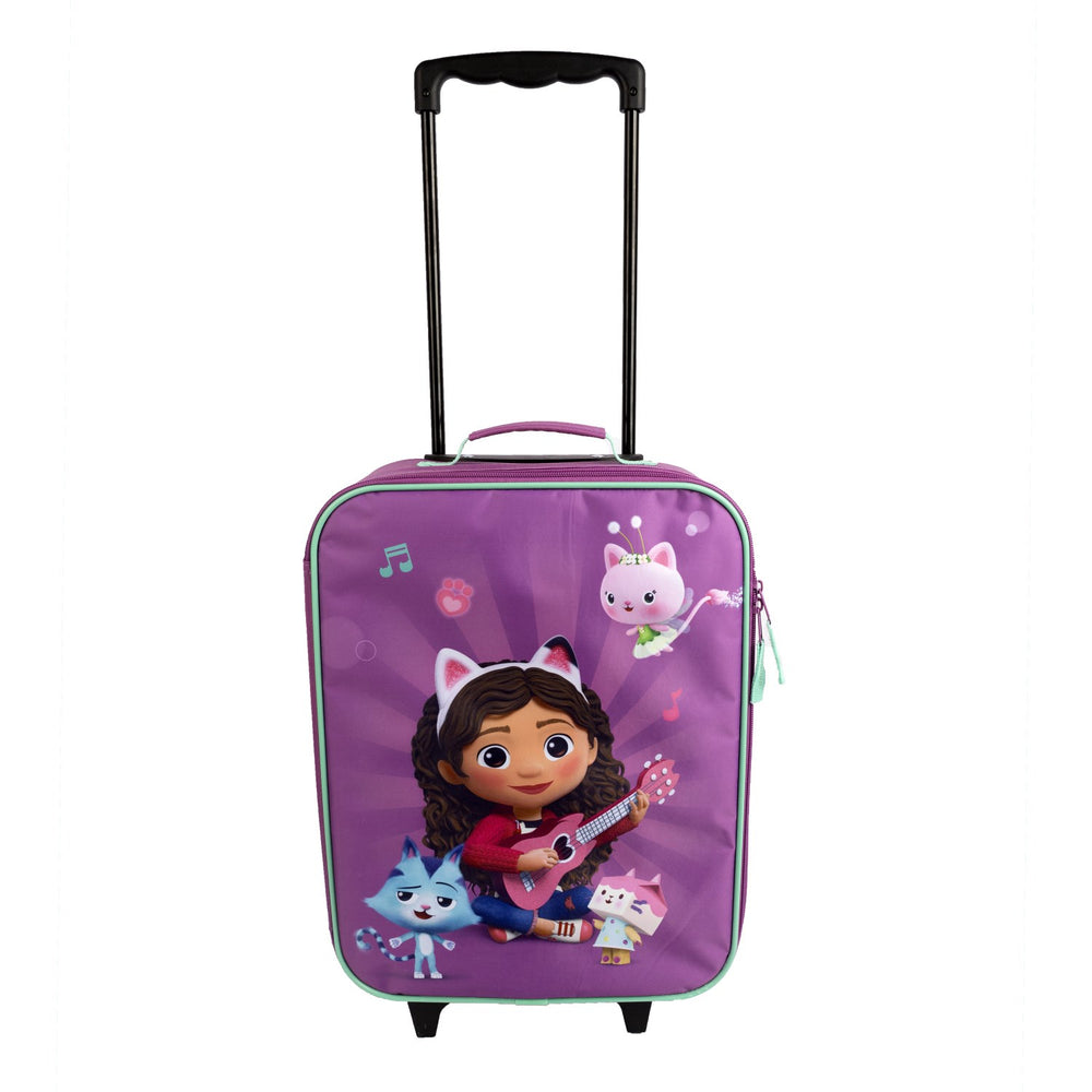 Giv dit barn den perfekte rejsepartner med Gabby's Dukkehus børnekuffert. Denne kuffert er designet til både sjov og funktionalitet, hvilket gør rejsen behagelig for både børn og voksne. Med et stort hovedrum og praktiske tovejs-lynlåse er pakning og organisering gjort nemt. Det justerbare og låsbare teleskophåndtag samt behagelige bærehåndtag sikrer en let håndtering for små hænder. De indvendige elastiske stropper holder indholdet sikkert på plads, mens de robuste hjul og støtteben garanterer stabilitet på farten. Indbygget navneskilt gør kufferten let genkendelig. Lavet af slidstærkt polyester, er denne kuffert klar til eventyr med dit barn.