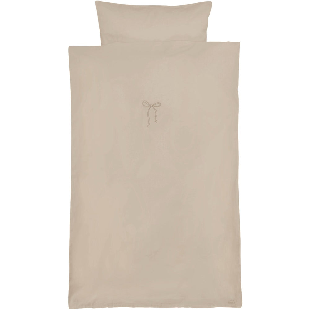 Giv din baby tryghed og komfort med dette bløde babysengetøj. Betrækket, fremstillet i blid, økologisk bomuld, er skånsomt mod barnets hud og sikrer en rolig søvn. Designet med en sød broderet sløjfe og udstyret med praktiske YKK lynlåse, gør både påklædning og vedligeholdelse lettere for forældrene. Den inkluderede stofpose tilbyder nem opbevaring og sikrer, at sengetøjet holdes rent og ordenligt, hvilket gør det ideal til både hverdagsbrug og som en fin gave.