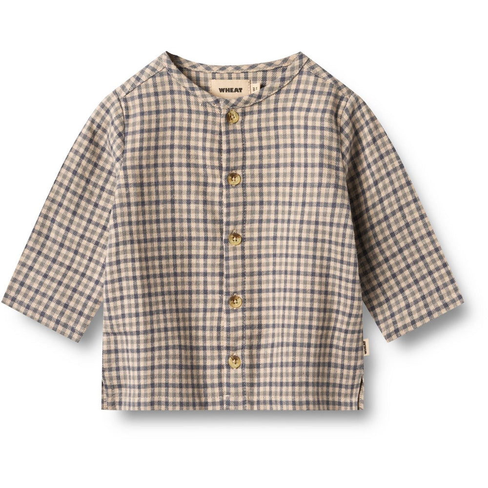 Klæd din lille op med charme i denne bløde langærmede skjorte fra Wheat. Fremstillet af 100% økologisk bomuld, garanterer den optimal komfort og er samtidig skånsom for barnets hud. Skjorten har et tidløst ternet design, en moderne mandarinkrave og praktiske knapper foran, der gør den let at tage på og af.